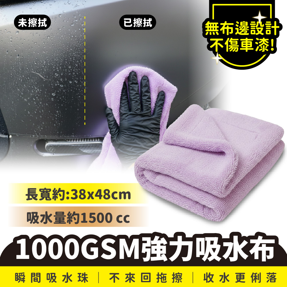 洗車必備強力吸水布,採用高密度 1000GSM 超細纖維材質,吸水力強、快乾不掉毛,能迅速吸走車身、玻璃表面水分,減少水痕與擦痕。柔軟材質不傷漆面,可重複清洗使用,是日常洗車、拋光與乾燥的實用工具。