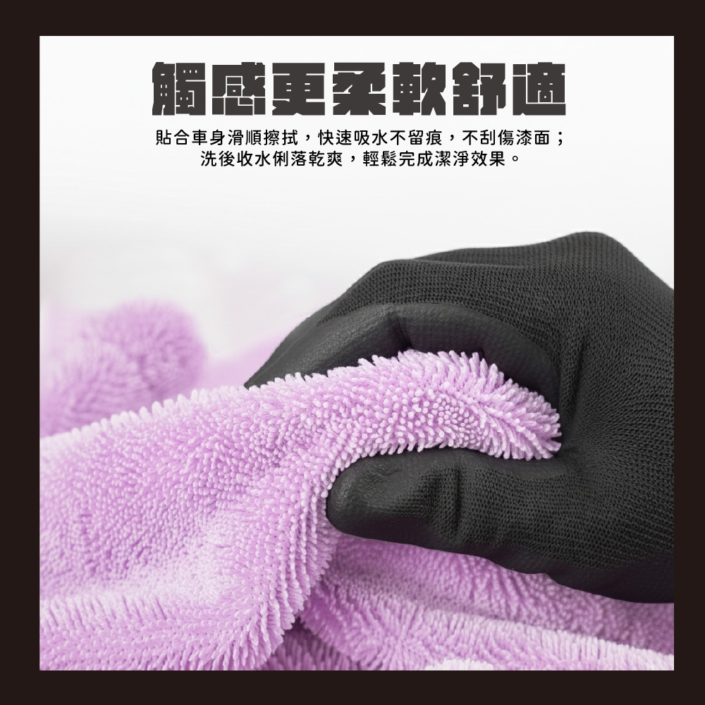 高密度纖維能避免水滴拉痕和毛屑殘留在烤漆或玻璃上,提升擦乾後的整潔感。