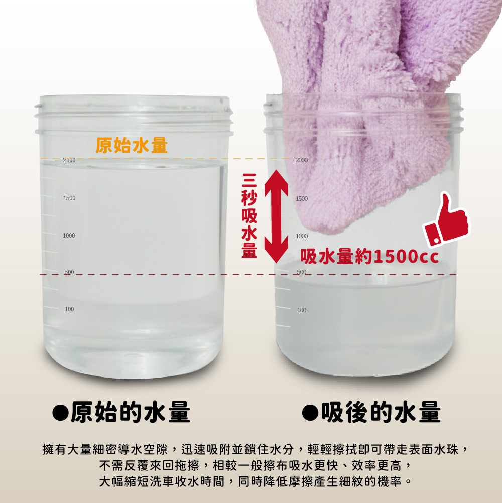 雙面布的設計與纖維結構讓吸水能力比一般布高許多倍,減少洗車後擦乾的時間