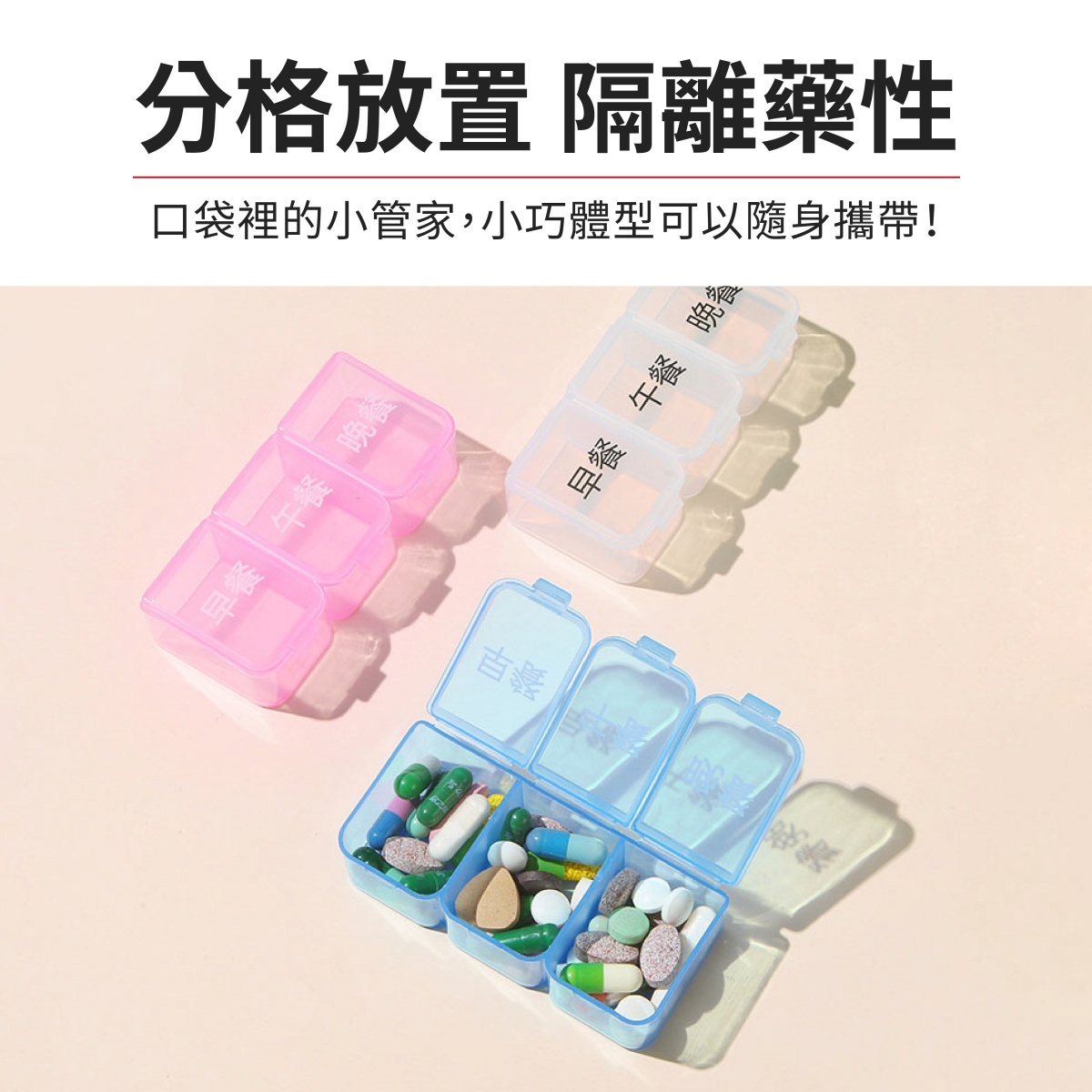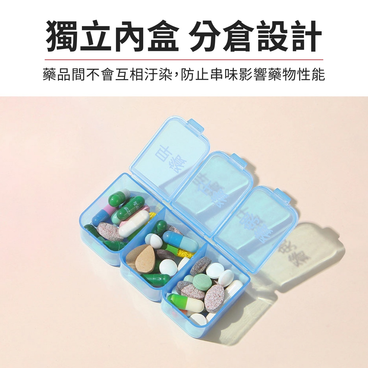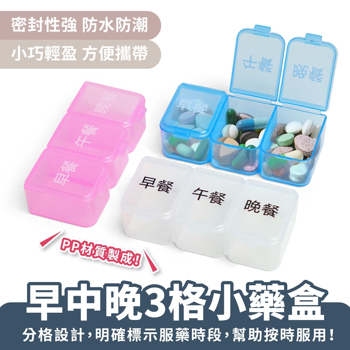 早中晚3格小藥盒,專為日常服藥管理設計,清楚標示「早、中、晚」三個服藥時段,幫助定時服用、不再搞混藥品。小巧尺寸僅8.5×3.7×2.4cm,收納方便、外出攜帶超輕盈。內部分格設計,藥品不混裝,維持整潔衛生。整體採用加厚PP材質製成,密封性優異,有效防潮、防水,守護藥品品質。實用與便攜兼具,是每日服藥、短期旅行或照護長輩的理想選擇。