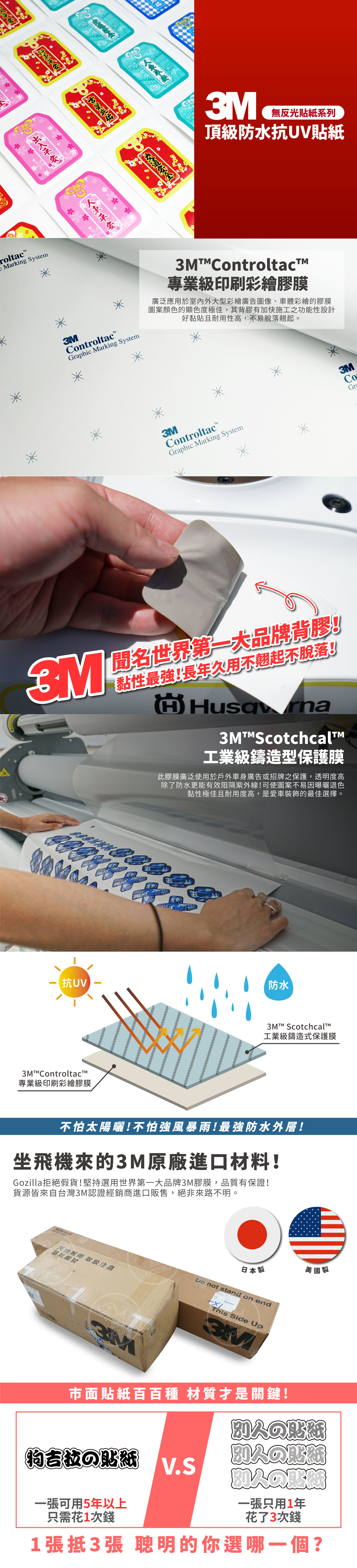 🏆市面上貼紙百百款,想永久耐用?材料才是關鍵!不惜成本選用3M系列膜料,真材實料!