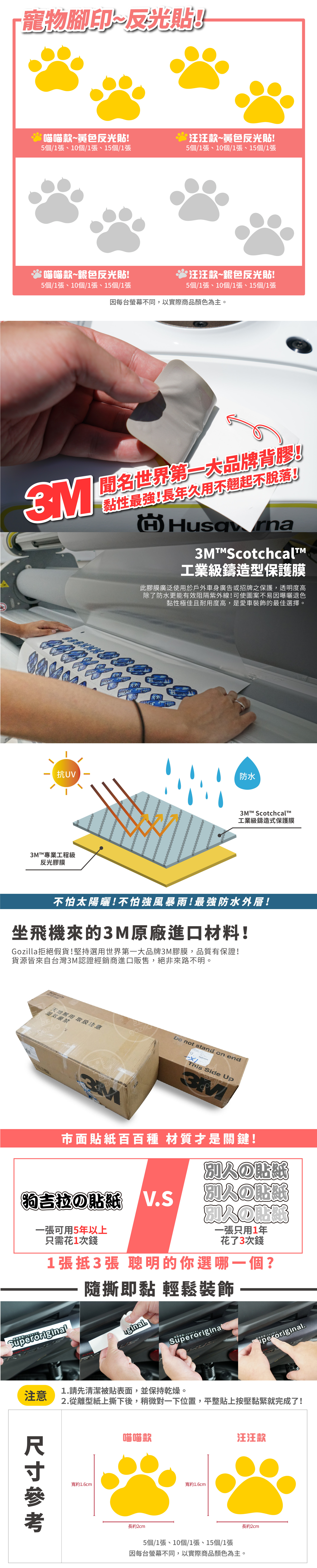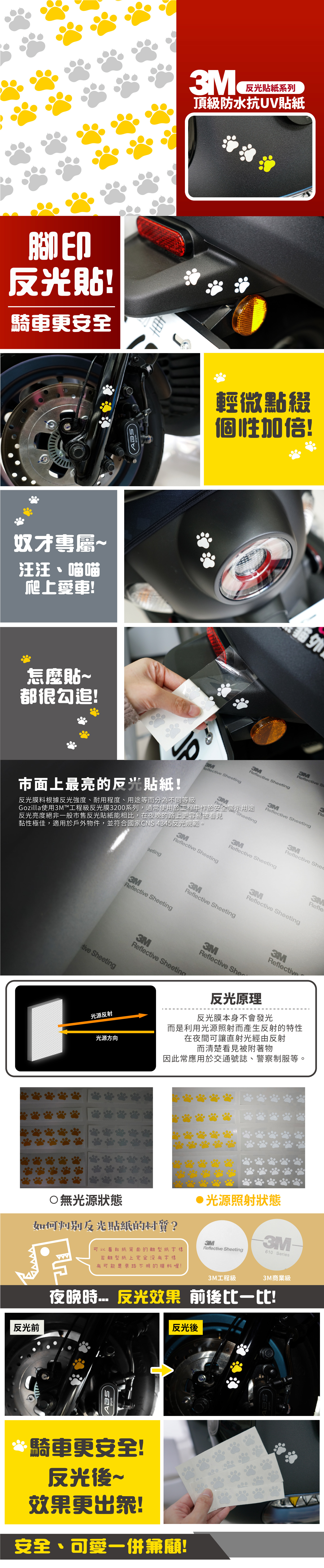 3M 反光貼紙【寵物腳印系列】防水抗UV 車身貼紙 車燈貼紙