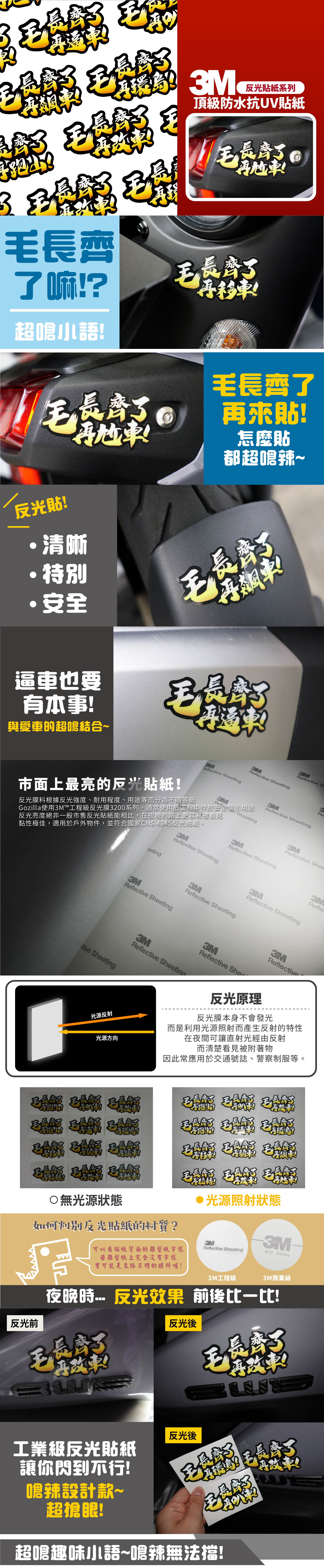 3M工程級反光貼紙【超嗆小語!毛長齊系列】防水抗UV 車身貼紙 車燈貼紙