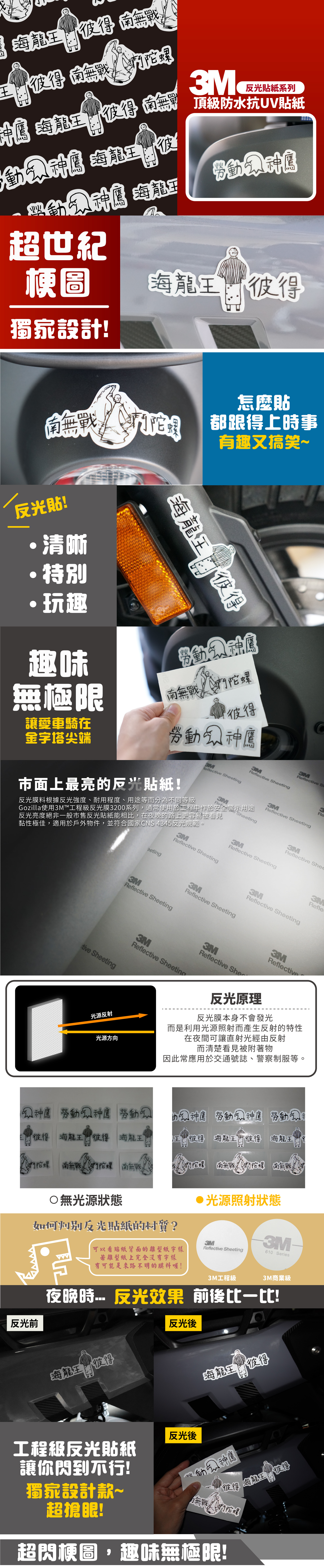 3M工程級反光貼紙 超世紀梗圖【勞動神鷹 海龍王彼得 南無戰鬥陀螺 】防水抗UV 車身貼紙 車燈貼紙