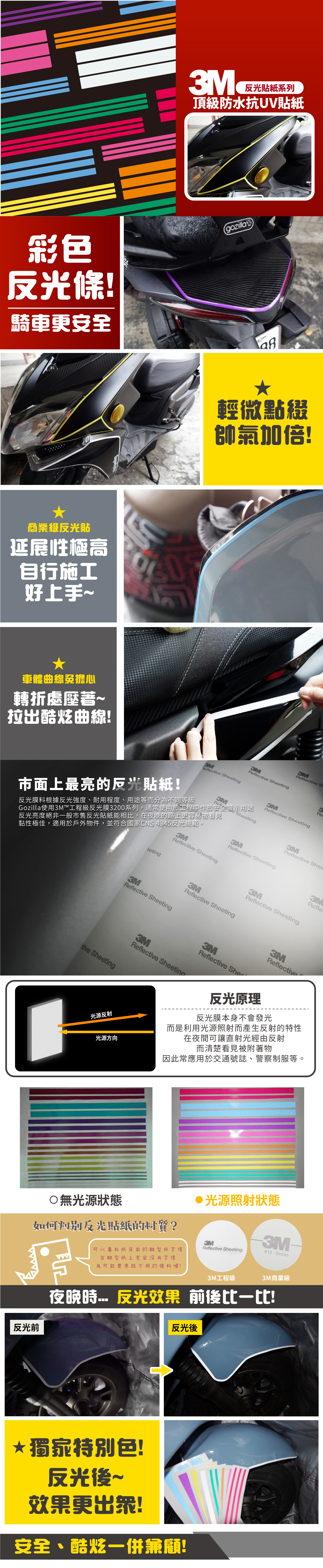 3M商業級反光貼紙【炫彩反光條】防水抗UV 車身貼紙 車燈貼紙