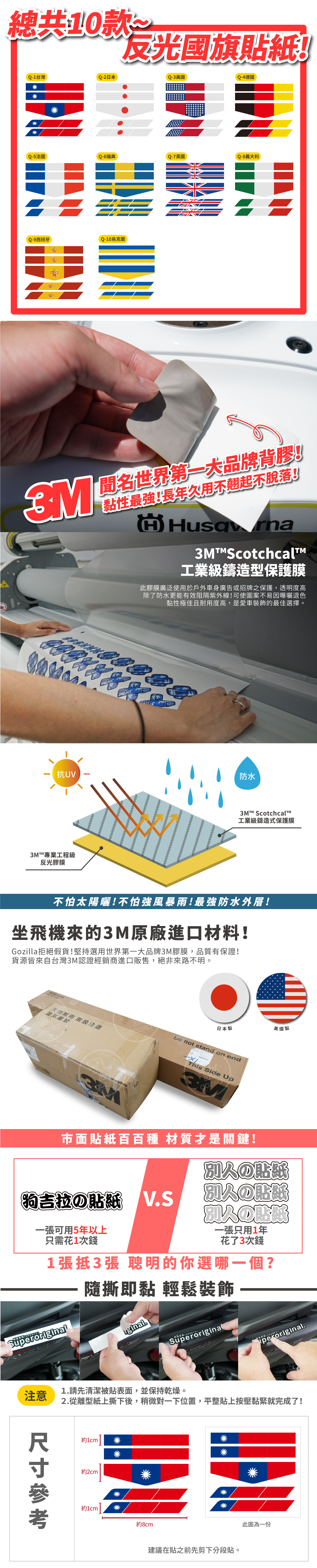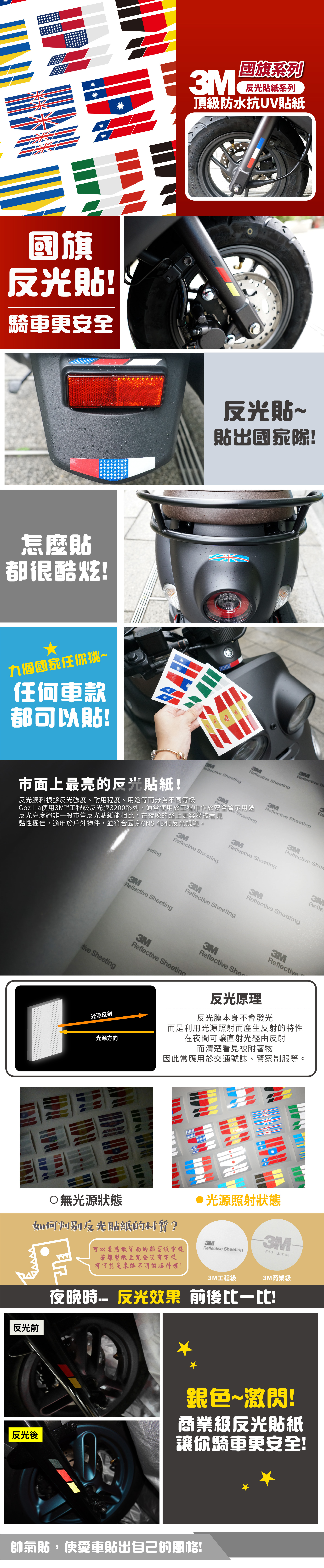 3M商業級反光貼紙【國旗反光條】防水抗UV 車身貼紙 車燈貼紙