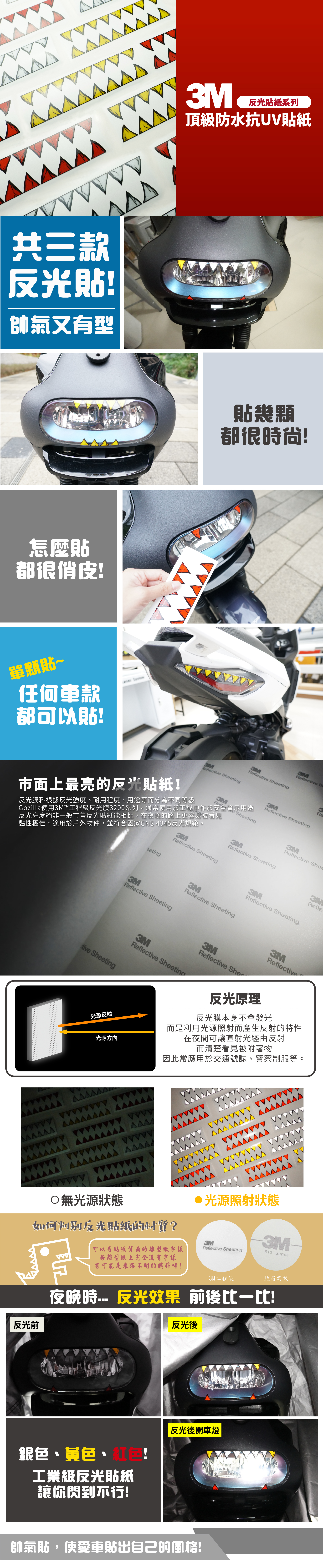 3M工程級反光貼紙【炫鑽牙齒】防水抗UV 車身貼紙 車燈貼紙