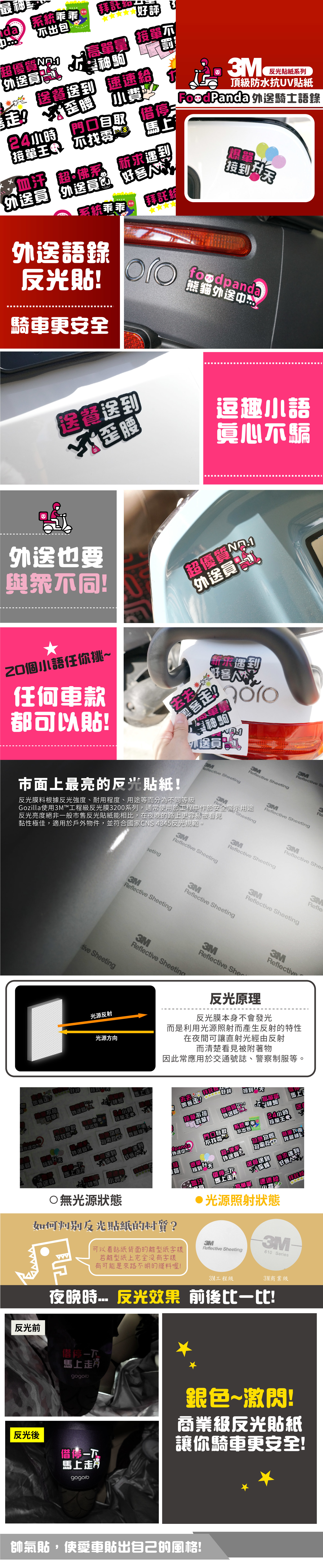 3M頂級反光貼紙【Food熊貓外送騎士語錄】防水抗UV 車身貼紙