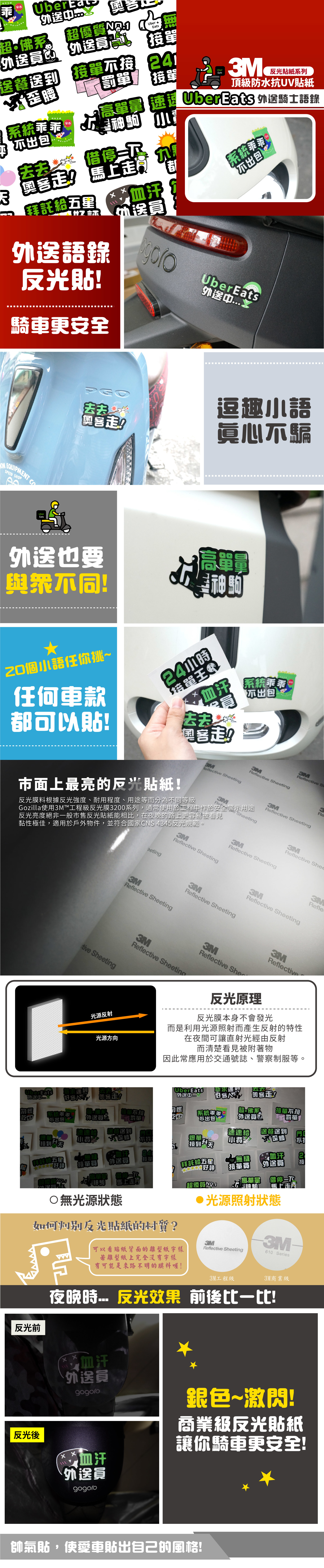 3M頂級反光貼紙【Uber Eats外送騎士語錄】防水抗UV 車身貼紙