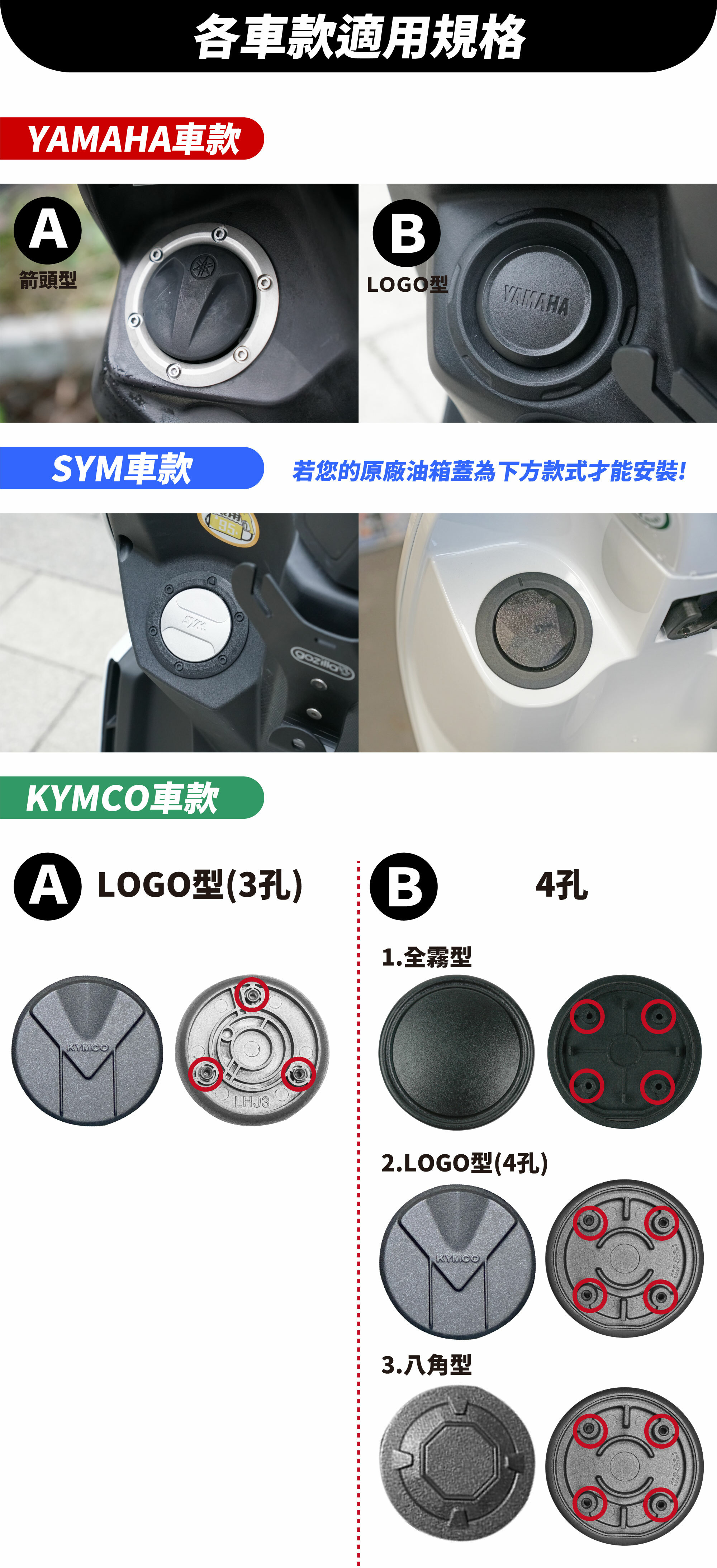 ✅YAMAHA / SYM / KYMCO 車款皆可安裝,請先詳閱圖文確認愛車原廠油箱蓋規格再購買。