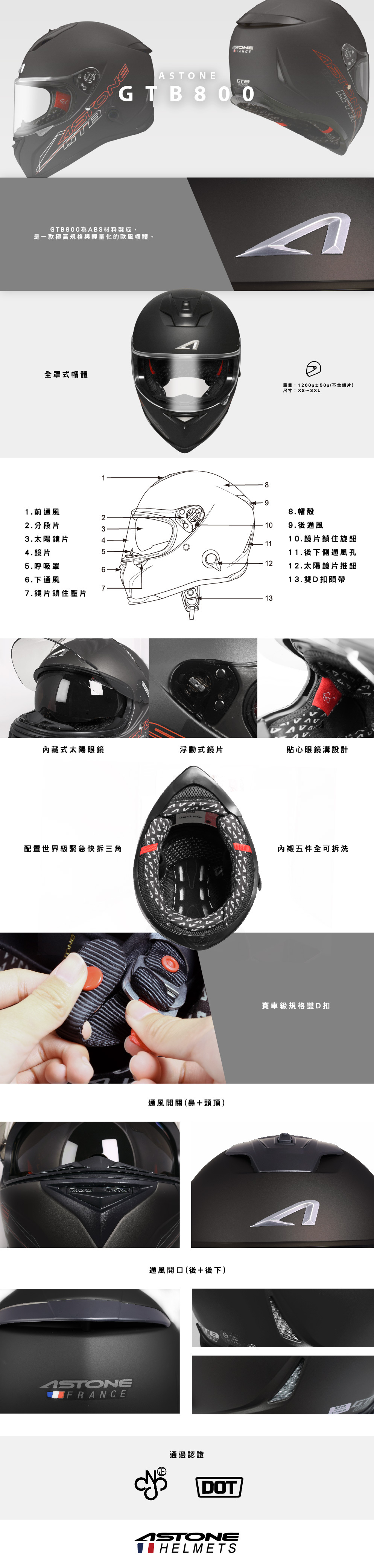 ASTONE GTB800 平光珍珠黑銀|astone helmet 標準款 全罩式安全帽