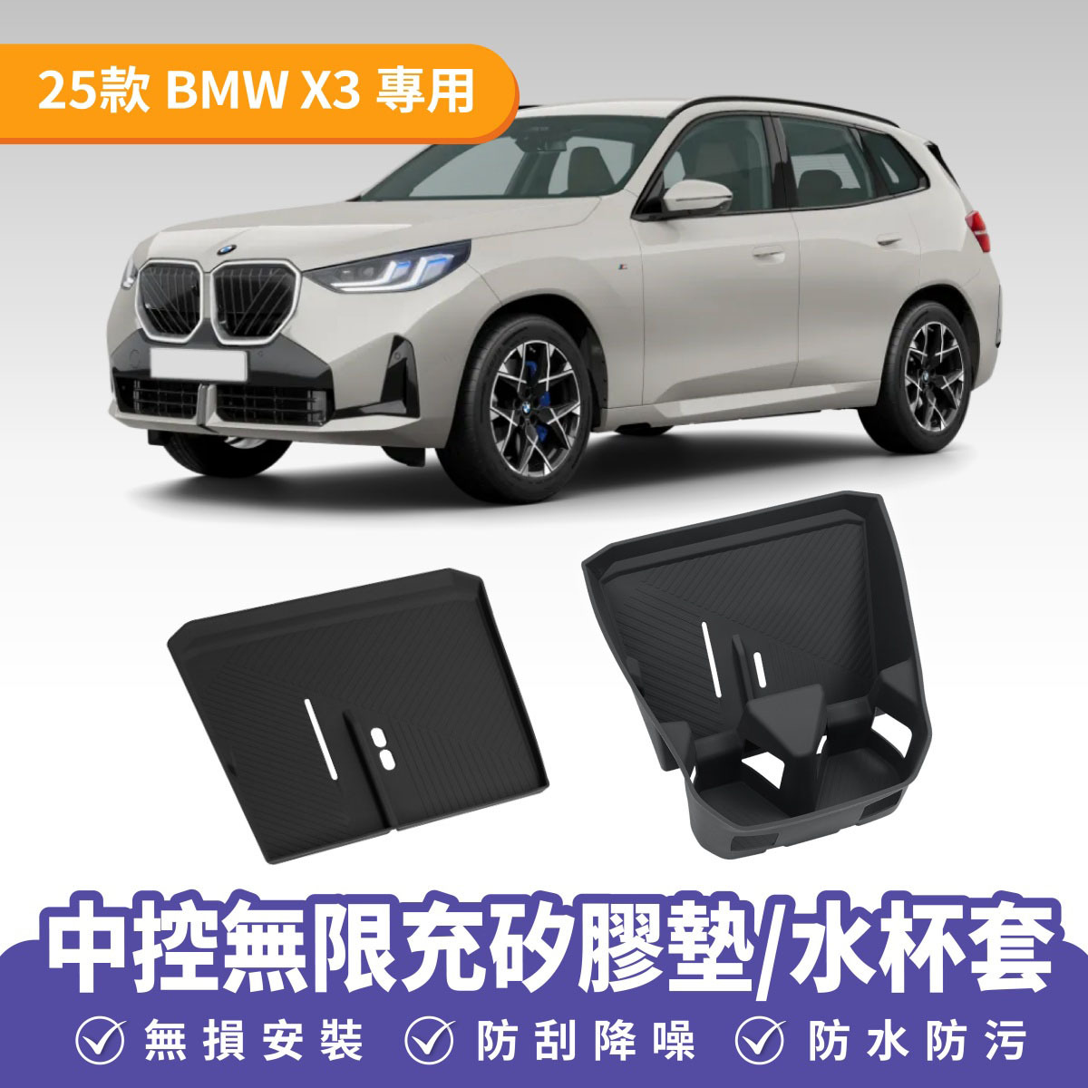 為 2025 款 BMW X3 打造的專用無限充矽膠墊系列,提供「中控無限充矽膠墊」與「無限充水杯套」兩種款式可選,皆採用環保柔韌矽膠材質製成,具備防滑、防刮、降噪音等實用特性。全系列以實車1:1精準開模,完美貼合原車空間,安裝簡單快速,不傷車體,無損內裝美觀與無線充電功能。中控墊保護無限充電板,水杯墊隔絕杯架磨損與晃動聲音,雙款任選,讓您依需求升級內裝,實用又有型!