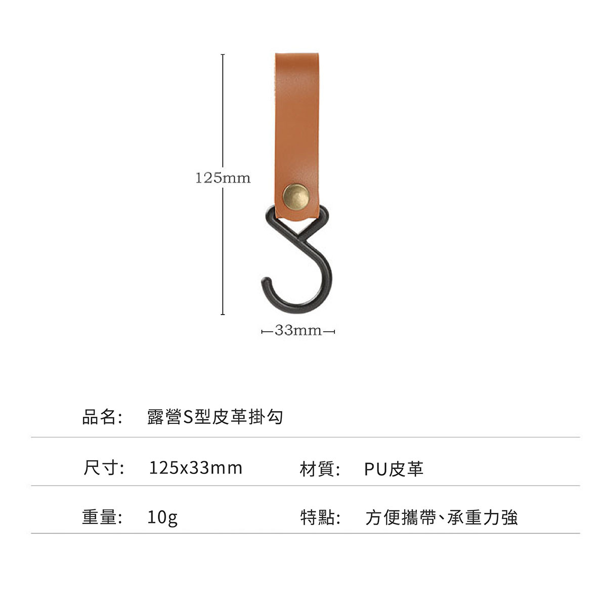 產品名稱:露營S型皮革掛勾