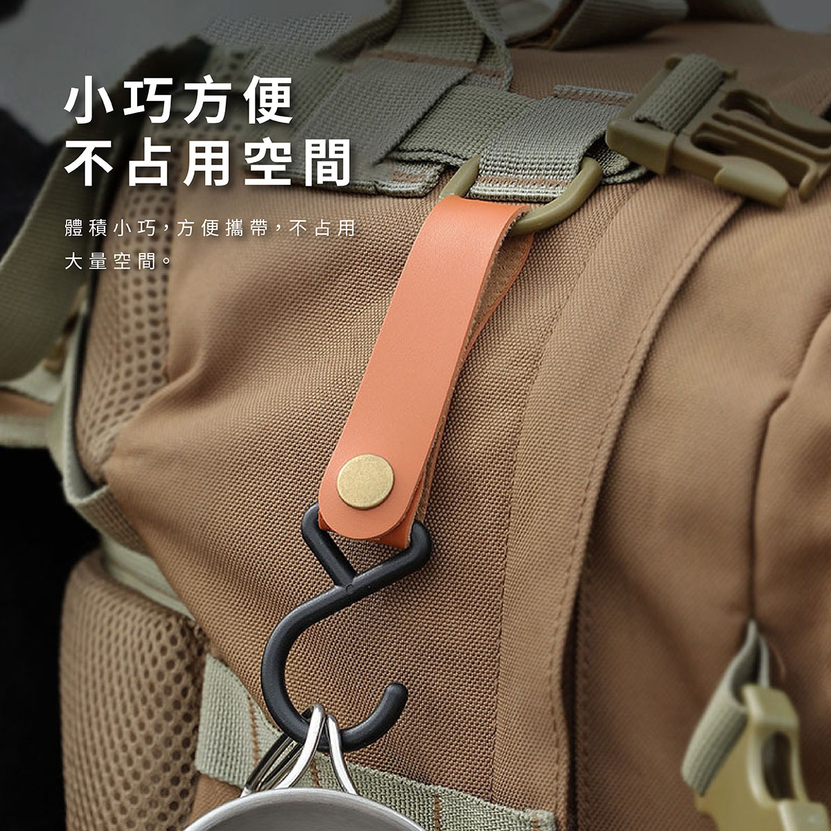 露營S型皮革掛勾采用皮革和尼龍材料,設計簡單而耐用,專為戶外露營設計。S型結構提供強力承重,可掛載各種露營裝備,如背包、燈具、工具等,便於攜帶和存取。這款掛勾不僅實用,還具有美觀的工藝,適合露營、登山、釣魚等戶外活動使用,是您的戶外必備配件。PU皮革材質掛勾,韌性強、重量超輕。