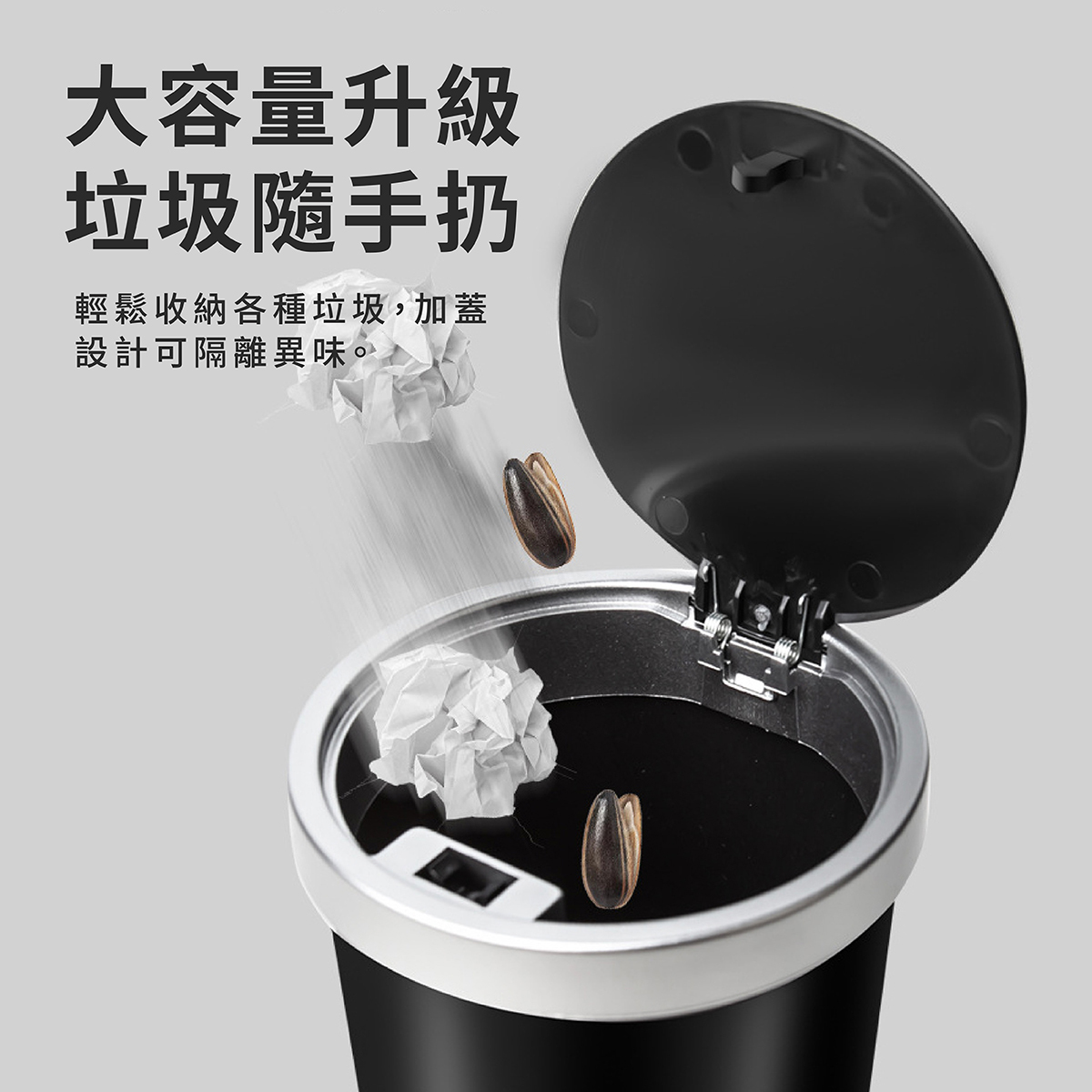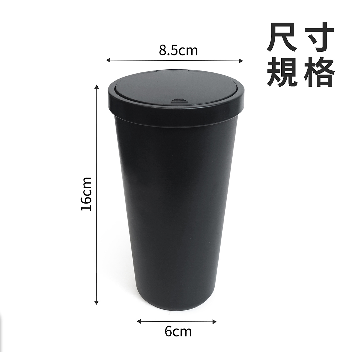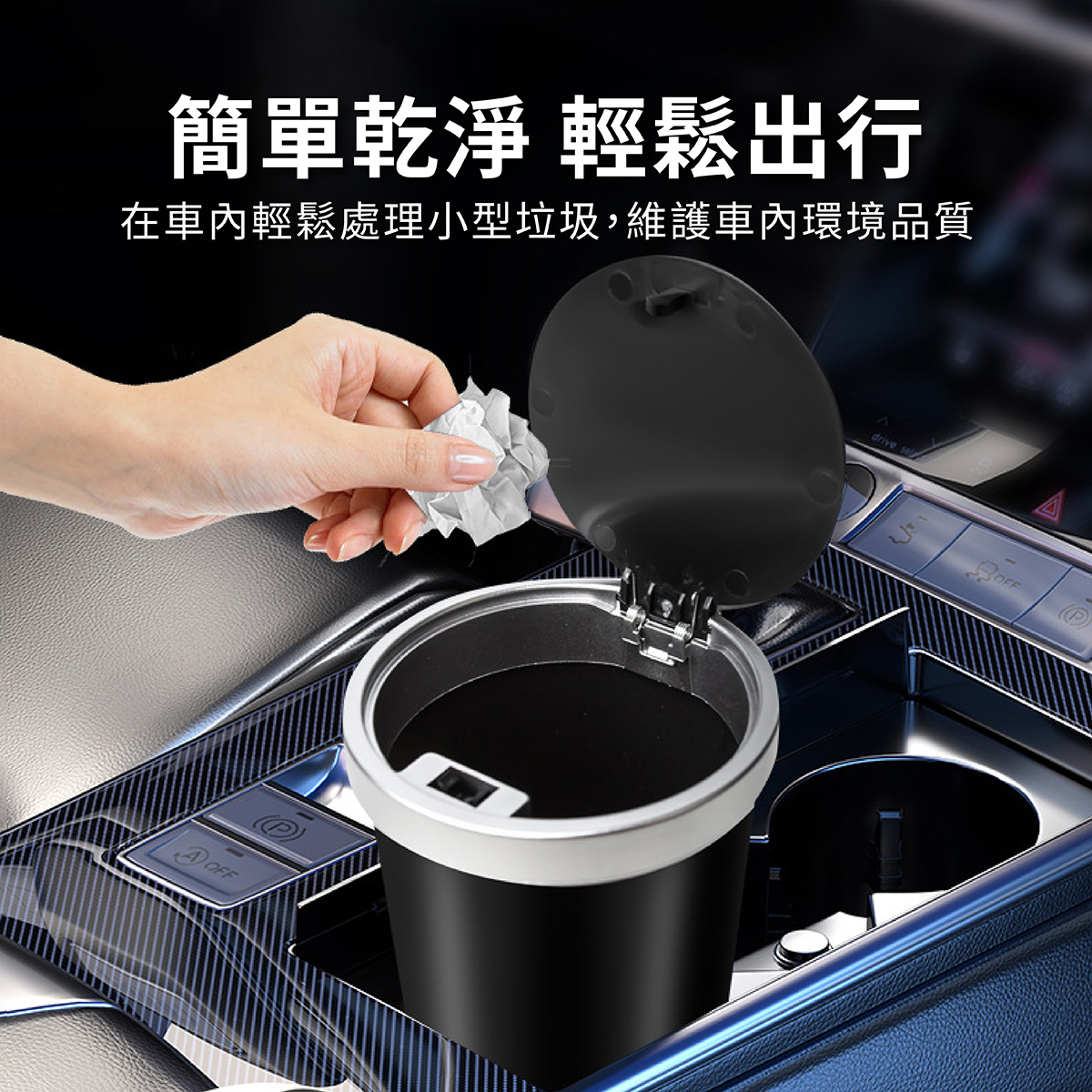 汽車杯型垃圾桶,採用 ABS 材質一體成形,耐用防漏,適合車內長期使用。按壓式設計,一按即開,單手操作輕鬆丟棄垃圾,加蓋設計有效隔離異味,保持車內空氣清新。內部壓圈固定垃圾袋,確保袋口穩固不滑落,方便更換。小巧杯型設計,完美適配車內杯架,不占空間。同時可當作收納盒使用,存放零錢、發票、小物件等,為您的愛車打造整潔有序的環境。