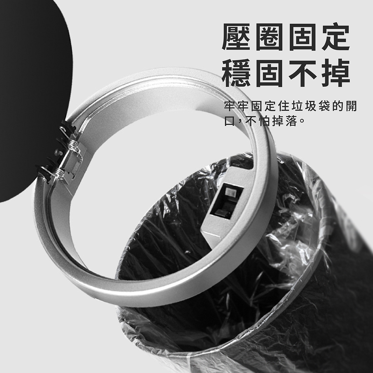 🏆壓圈固定垃圾袋,袋口穩固不掉。