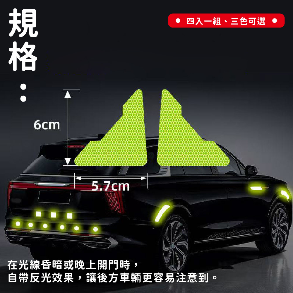 在光線昏暗或晚上開門時,自帶反光效果,讓後方車輛更容易注意到。