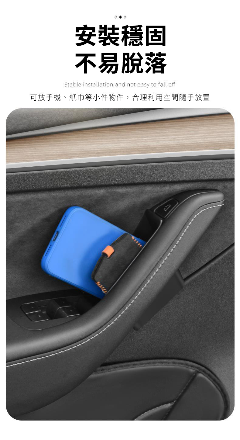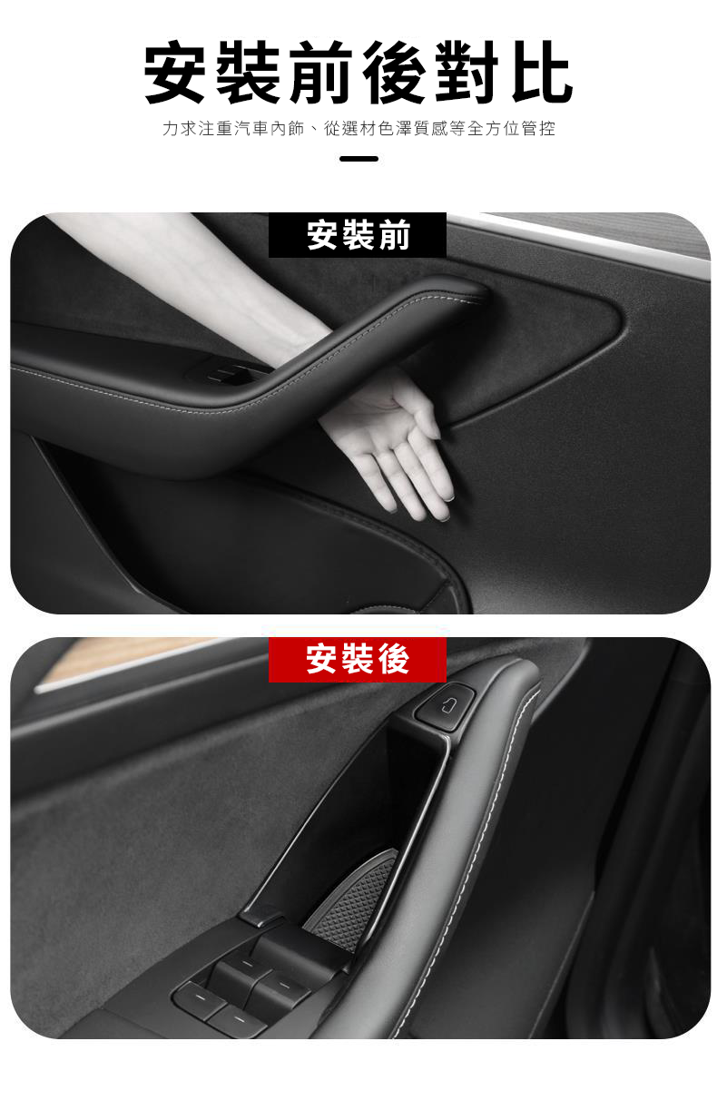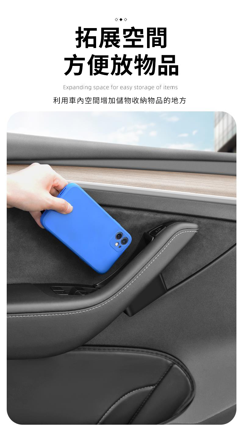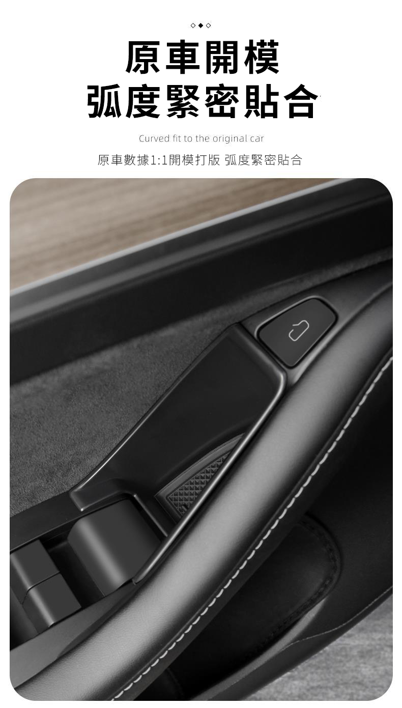 車門把手儲物盒,專為Tesla Model 3/Y設計,預留緊急安全拉手位置,突發意外時也能正常使用。經原車開模,弧度設計緊密貼合車門,完美融入車內裝潢。安裝簡單,無須複雜工具,輕鬆提升車內儲物空間,讓您的車內環境更整潔有序。