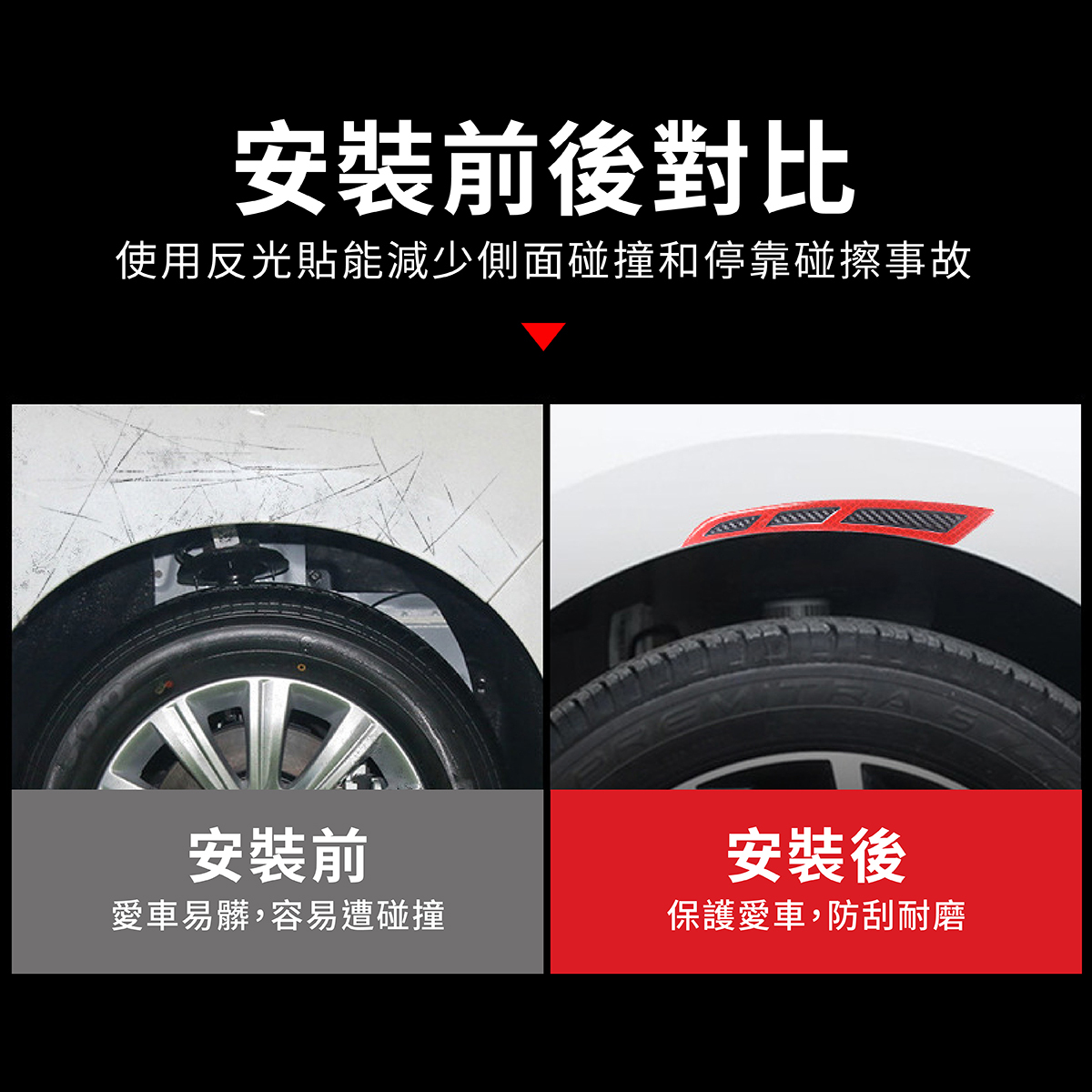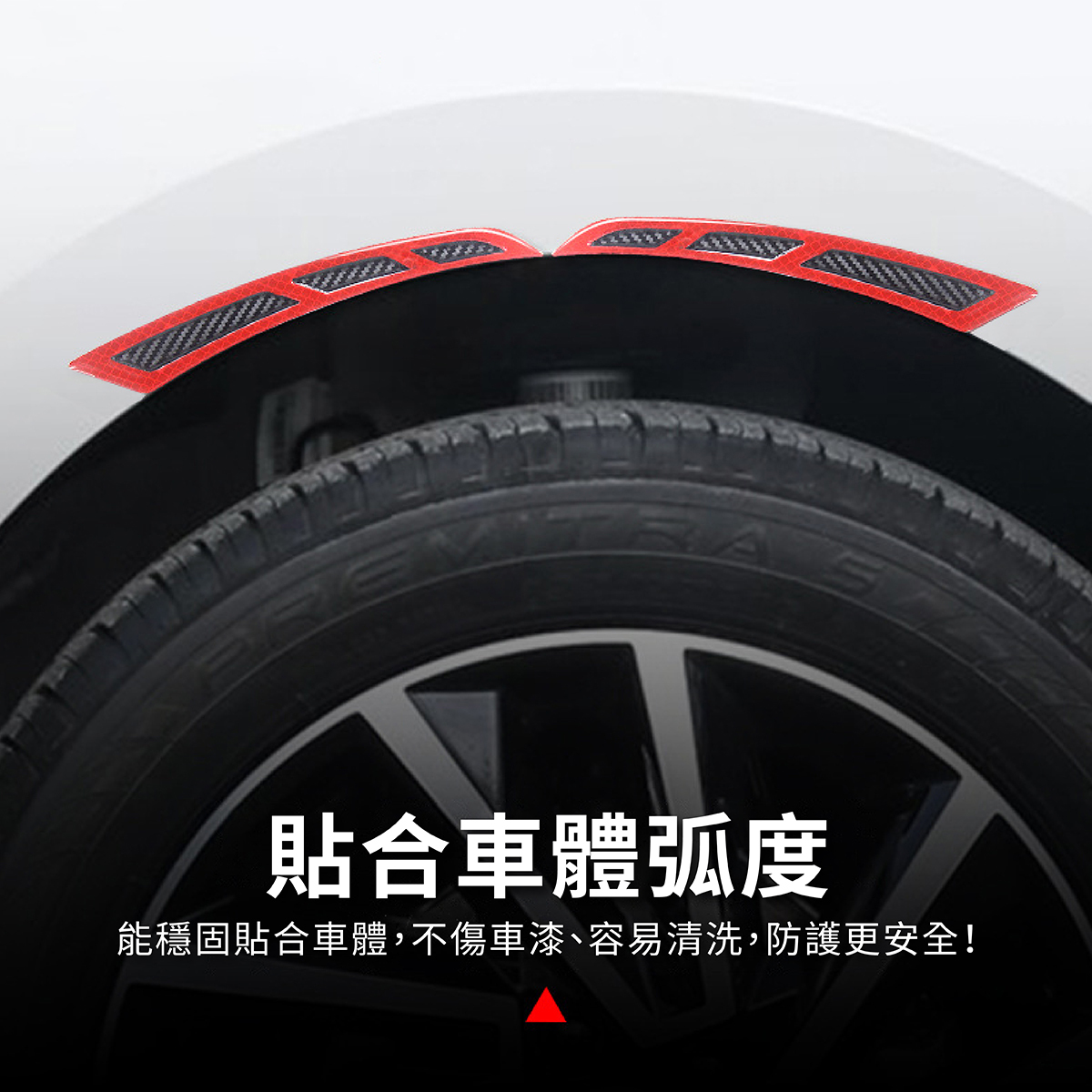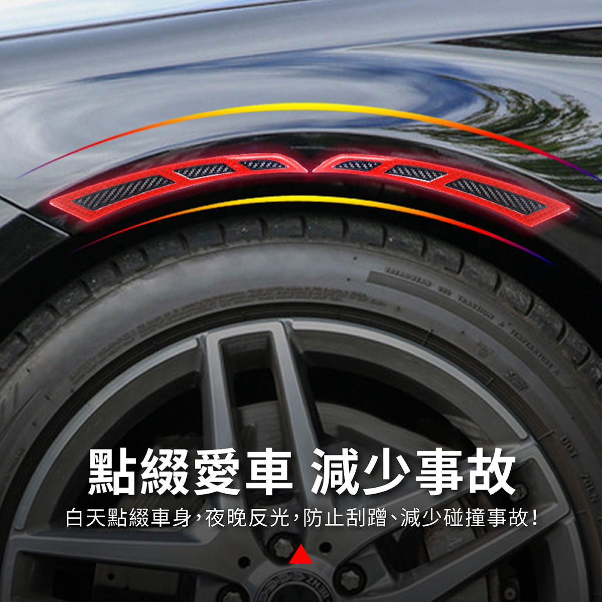 汽車輪眉反光警示貼採用全稜鏡反光技術,夜間遇光即強烈反射,大幅提升行車安全性,減少側面碰撞風險。白天可作為車身裝飾,增添愛車個性,夜間則提供高效警示。貼片材質為PVC+碳纖維,耐磨、防水、防曬,適應各種天候環境,黏性強且貼合輪眉弧度,不易脫落。安裝簡單無需工具,即貼即用,適用於各種車型。提供紅色、白色、黃色及螢光綠四種顏色選擇,讓您的愛車兼具安全與美觀。