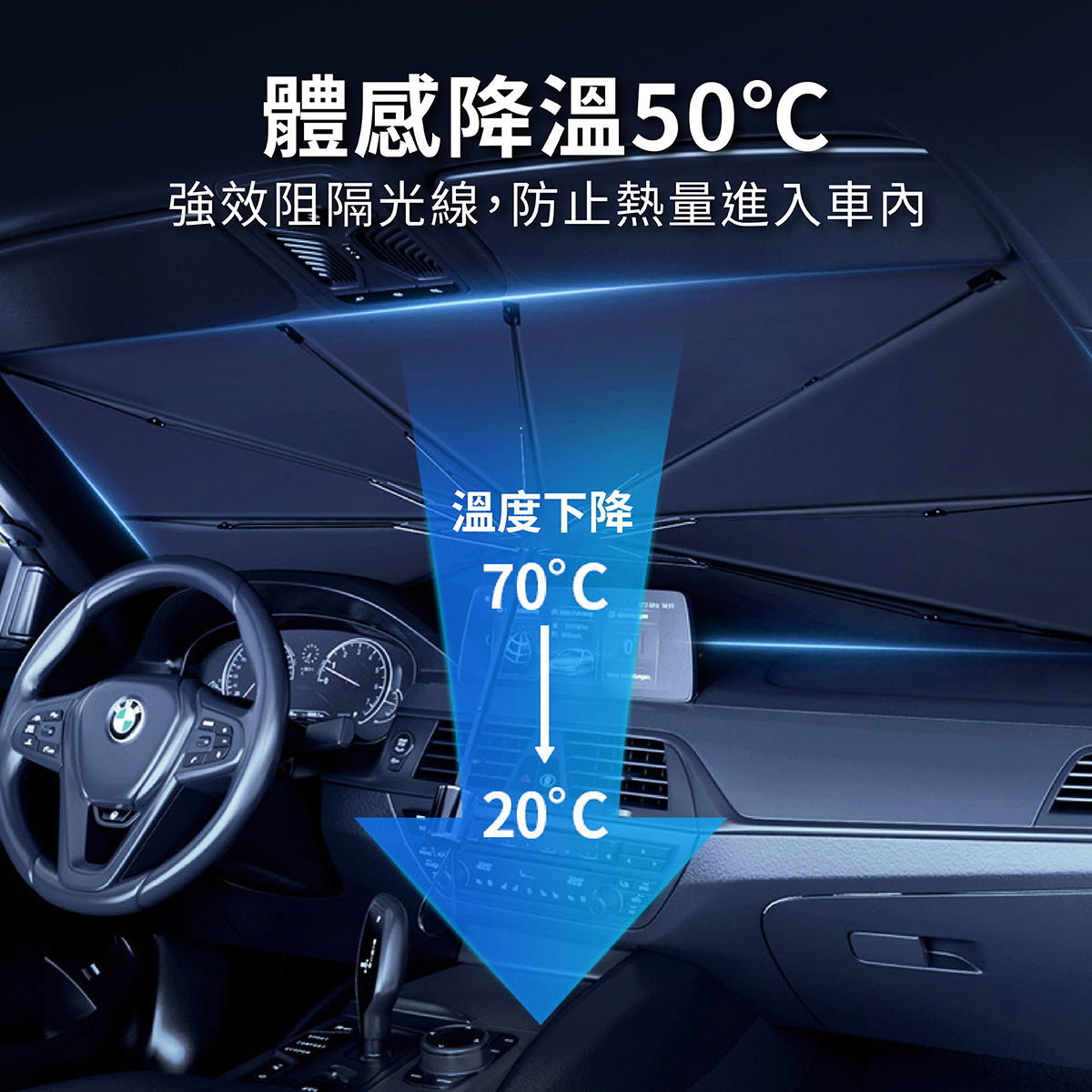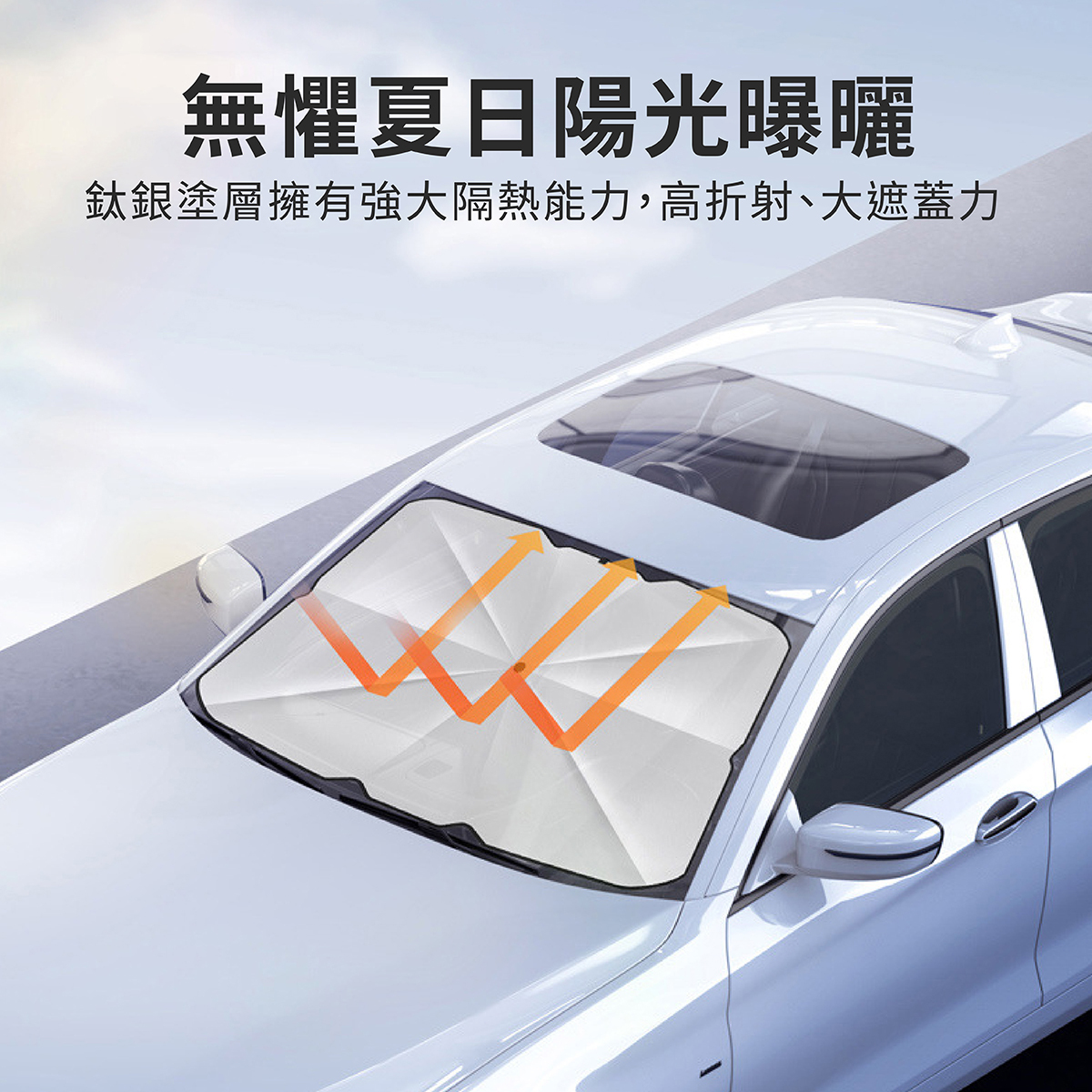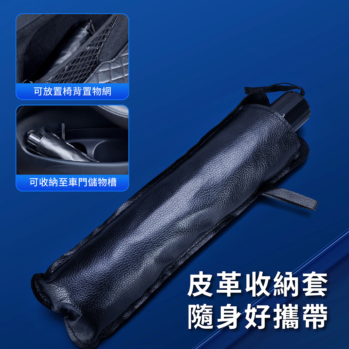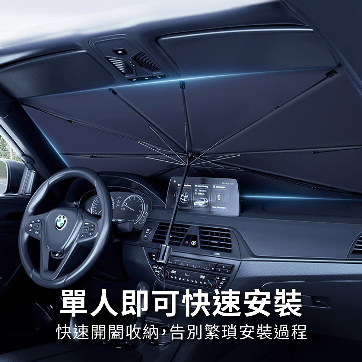 汽車摺疊遮陽傘,專為駕駛者設計,能有效阻擋超過 99% 的紫外線,防止車內裝飾曝曬老化,同時降低車內溫度,讓您夏天進車不再悶熱難耐。採用摺疊傘結構設計,單人即可快速開闔安裝,輕鬆使用不費力。遮陽傘配備耐用金屬骨架,穩固不易變形,並附贈高質感皮革收納袋,攜帶方便,不佔空間。無論停車或旅途休息,都能提供卓越的遮陽保護,是愛車族的理想選擇。