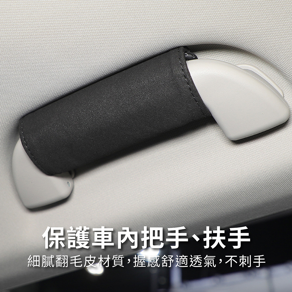 汽車內把手保護套,專為提升車內舒適度與耐用性設計,能有效防止車內把手與扶手刮傷、磨損與老化。採用高品質翻毛皮材質,手感柔軟細膩,舒適不刺手,提升駕駛與乘客體驗。具備耐磨抗刮特性,長時間使用也不易退色、掉毛,並且耐曬耐用,適應各種氣候環境。魔鬼氈黏貼設計,安裝拆卸簡單快速,無需工具即可輕鬆更換。適用於多種車款,讓您的愛車更顯質感與品味。
