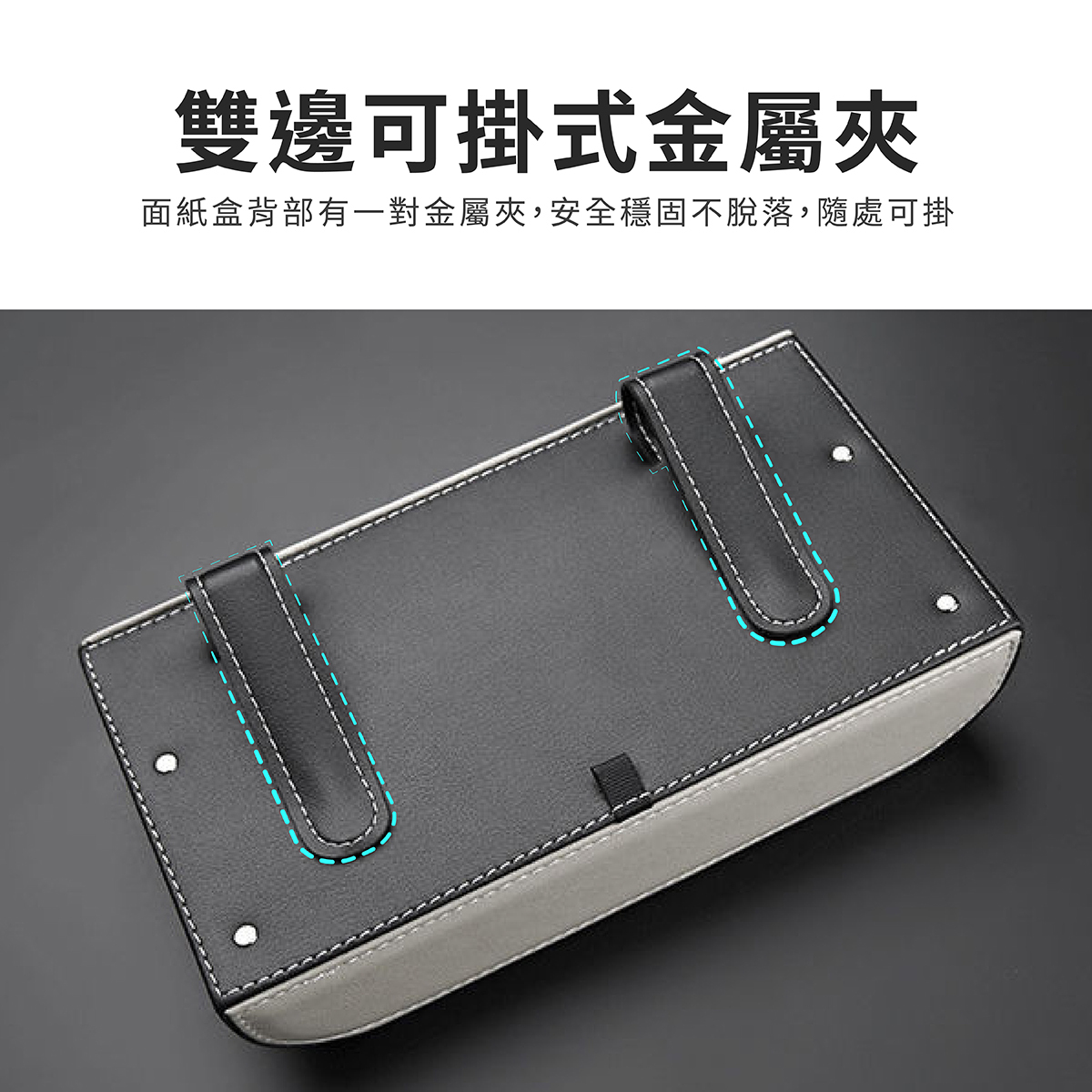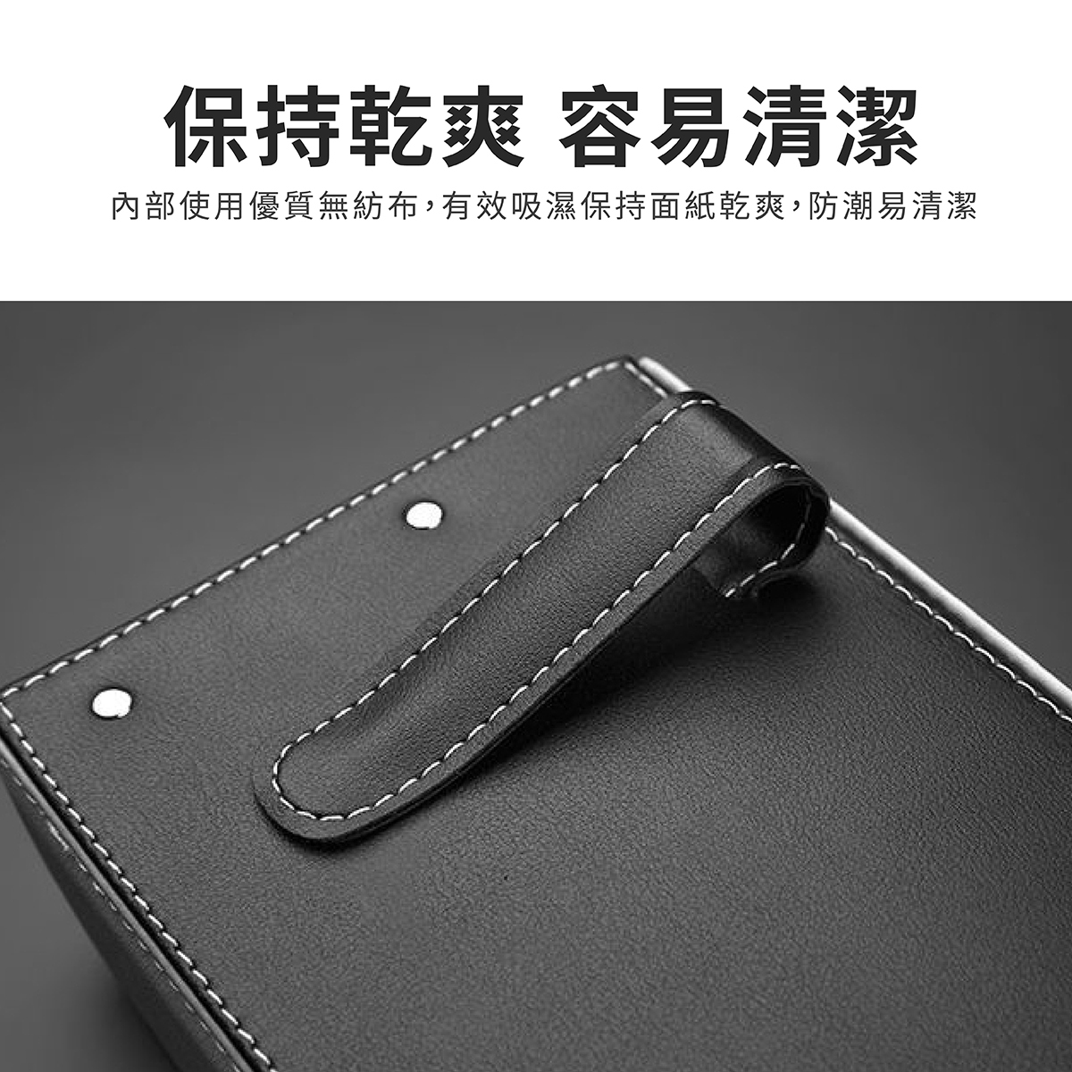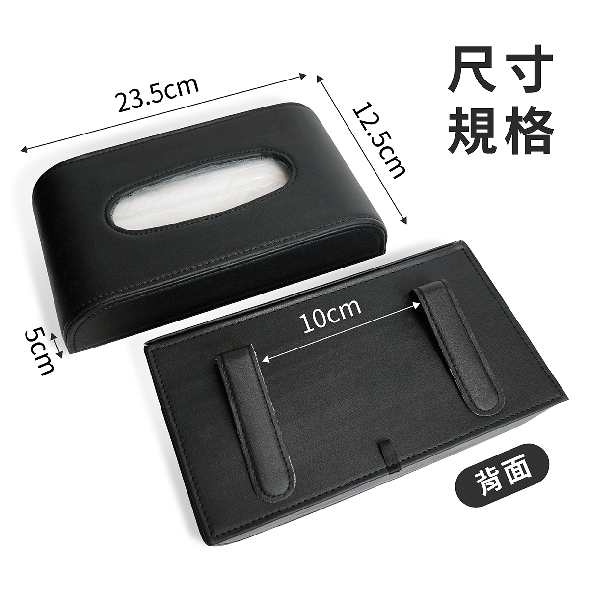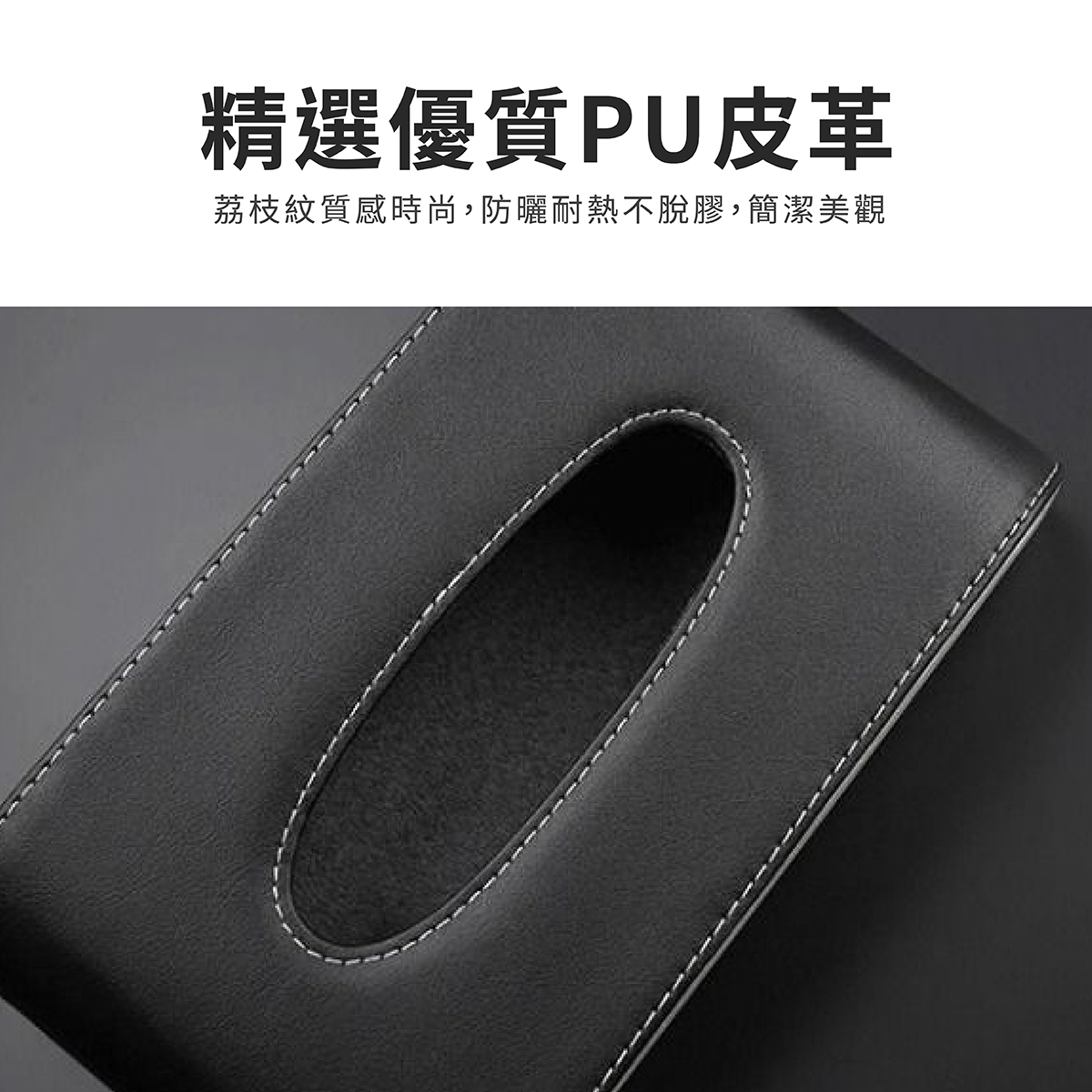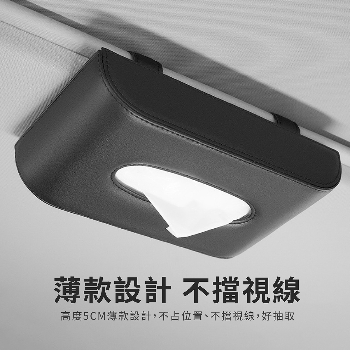 汽車掛式面紙盒,專為車主打造的高效收納解決方案,5CM薄款設計,不占空間、不擋視線,確保行車安全。採用優質PU皮革材質,具備防曬耐熱特性,不易脫膠、經久耐用。內部搭配無紡布襯裡,有效防潮、防塵,清潔更便利。雙邊搭載可掛式金屬夾,穩固固定於遮陽板、椅背等位置,安裝簡單快捷,不易鬆動掉落。適用各種車型,讓您在行車途中輕鬆抽取面紙,提升駕駛舒適度與便利性,是車內收納的必備良品。