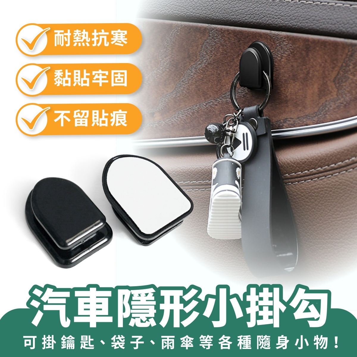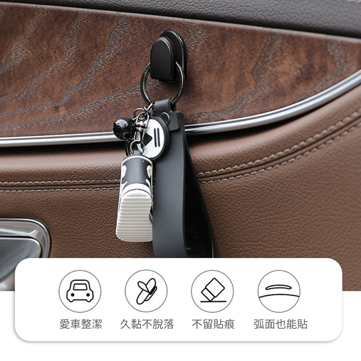 專為車主打造的高實用性收納配件,幫助整理車內空間,讓物品擺放更有條理。採用強力背膠設計,能夠牢牢固定於車內表面,耐嚴寒、高溫環境依然穩固不脫落,不易受天氣影響。小巧輕便的設計不占空間,可輕鬆安裝於中控區、車門側邊、座椅背後等位置,提供隱形掛置功能,讓車內維持整潔。