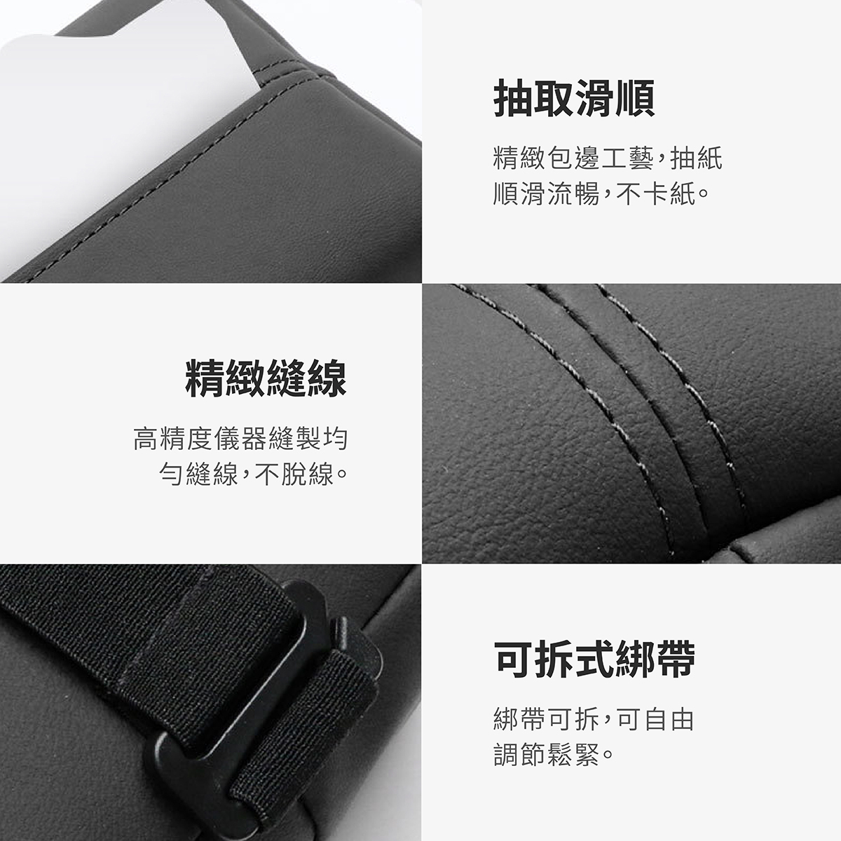 汽車皮革面紙套,選用柔軟耐磨的納帕皮革材質,手感細膩,兼具高級質感與耐用性,為您的車內增添時尚品味。可拆式綁帶設計,可穩固固定於遮陽板、椅背或中央扶手等位置,不占空間且安裝簡單,不影響車內整潔度。面紙取出口設計流暢,確保抽取順暢不卡紙,讓駕駛與乘客都能輕鬆取用,提升行車便利性。輕盈設計不影響車內空間,並有效收納紙巾,避免雜亂。無論是日常通勤、長途旅行或露營出遊,這款皮革面紙套都是車內不可或缺的實用配件,確保您隨時隨地都能方便取用紙巾,保持整潔與舒適。