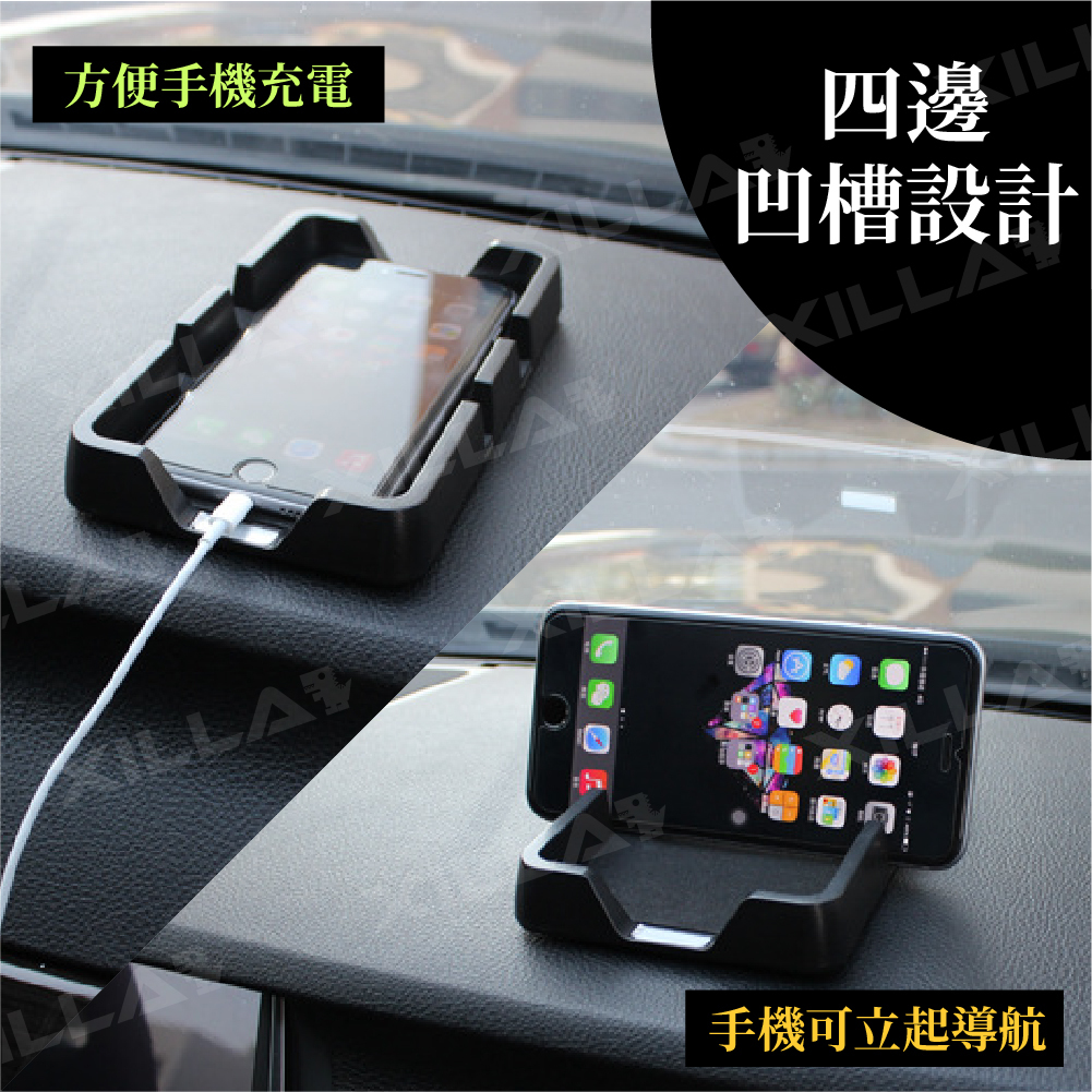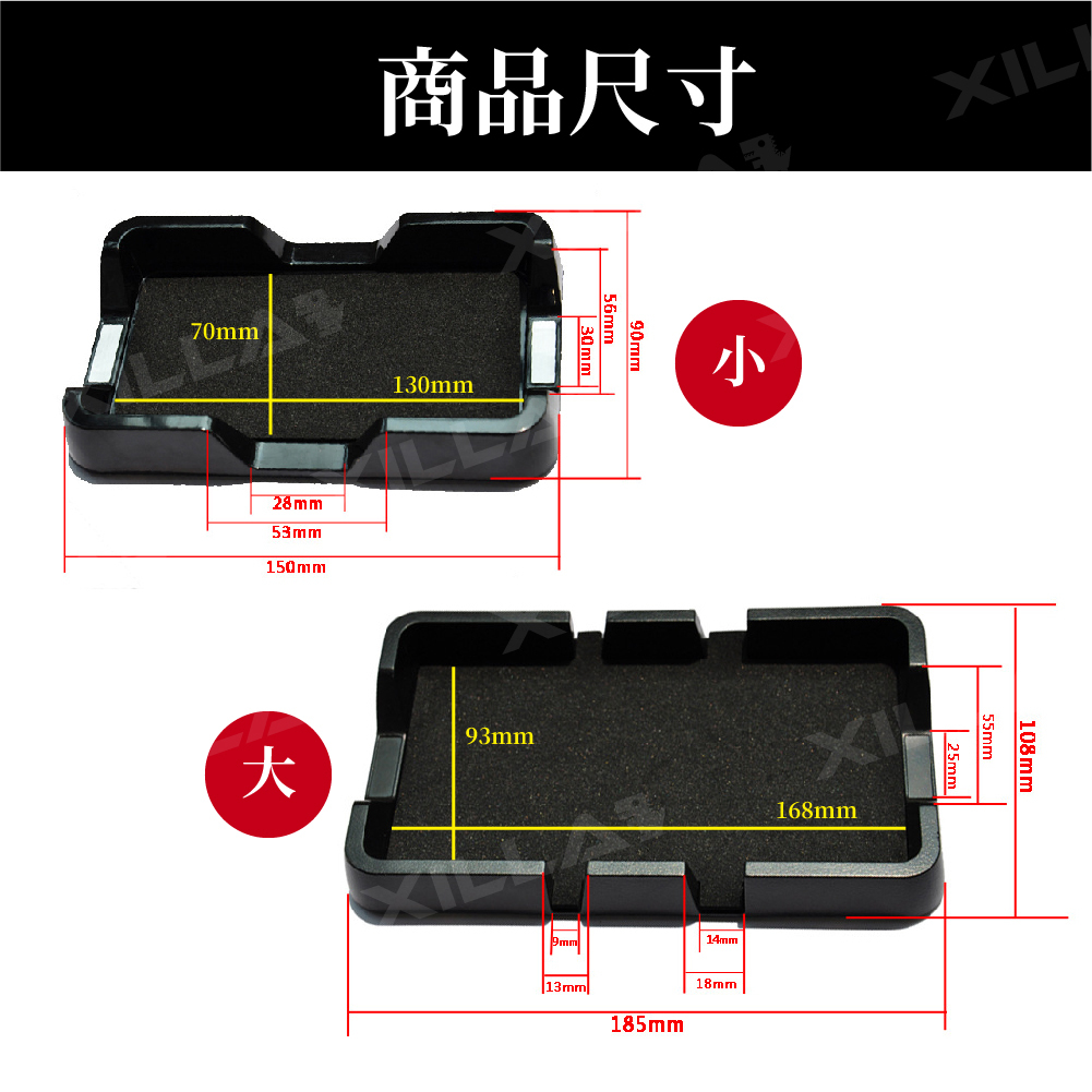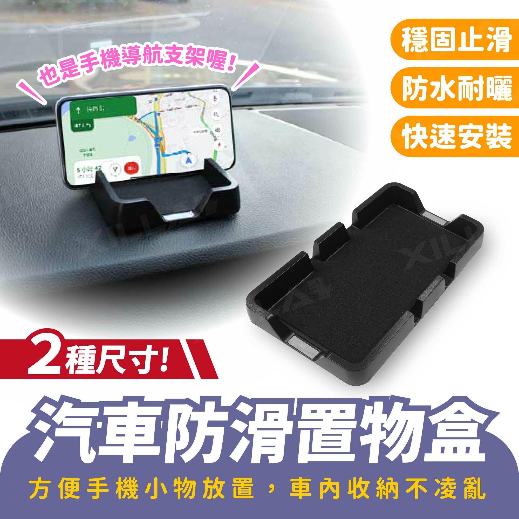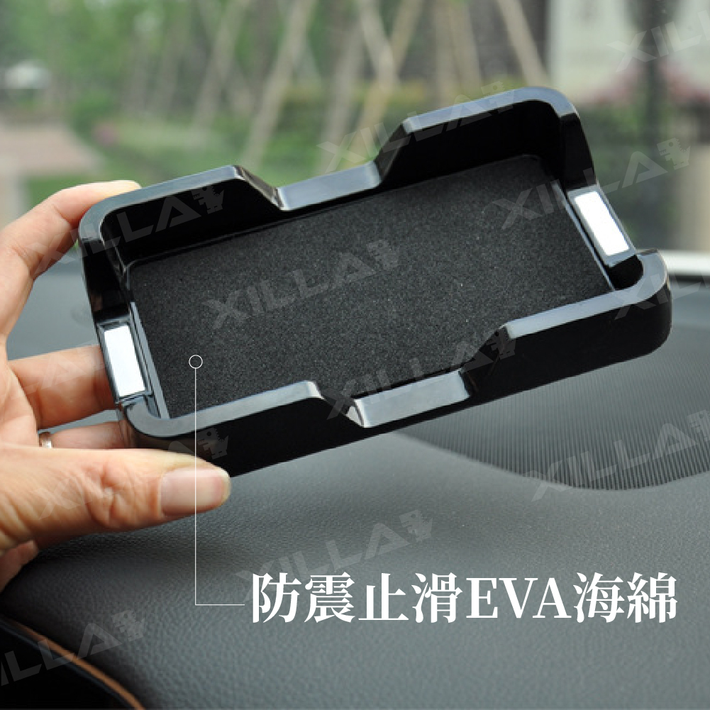 汽車多功能手機支架置物盒,結合手機導航支架與收納功能,讓您的車內更整潔有序!可放置鑰匙、零錢等小物,底部搭載強力PU固定魔術貼,快速安裝不傷內飾,拆卸方便不留殘膠。內部EVA防震止滑海綿墊,避免行駛中物品滑動,四邊凹槽設計不擋充電孔,手機可直立使用。框架式邊緣高起,有效防止物品掉落。適用於儀表台較平整的車型,PU黏貼處可水洗恢復黏性,提供更穩固安心的使用體驗!