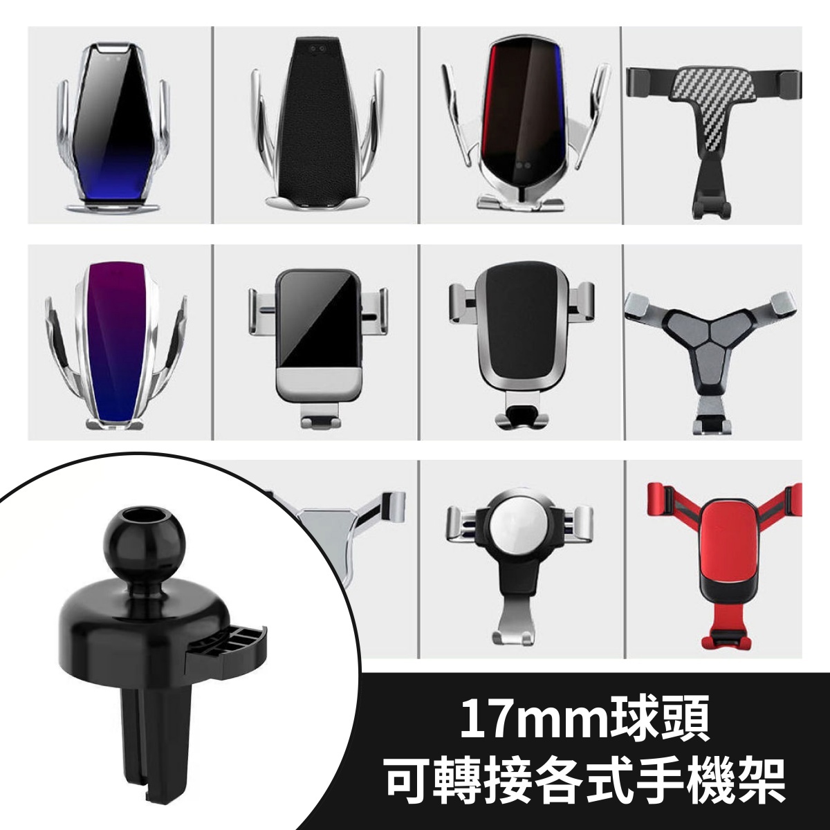 🏆17mm球頭鷹嘴倒鈎可直接安裝在圓形出風口上,可轉接各式手機支架