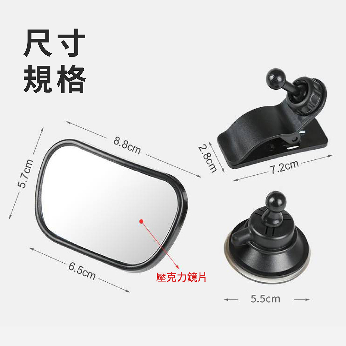 汽車後座觀察鏡,讓您在行駛途中不必回頭,也能輕鬆掌握後座狀況,提高行車安全。採用 360 度自由旋轉設計,可依需求調整最佳視角,確保清晰視野。提供吸盤式與夾式兩種安裝方式,適用不同車款與需求,安裝簡單,穩固耐用。選用高品質壓克力鏡片,影像清晰且具防碎裂特性,萬一破損也不會飛濺,安全更有保障。無論是關心後座孩童、寵物,還是乘客狀況,這款觀察鏡都是駕駛的理想輔助工具。