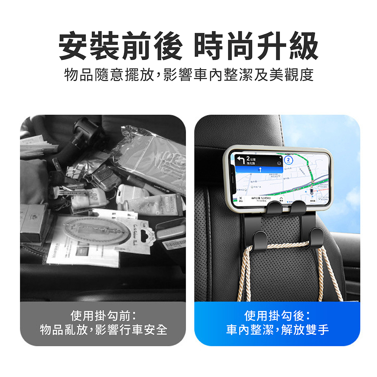 🏆四勾一體式設計,方便放置手機、吊掛物品。