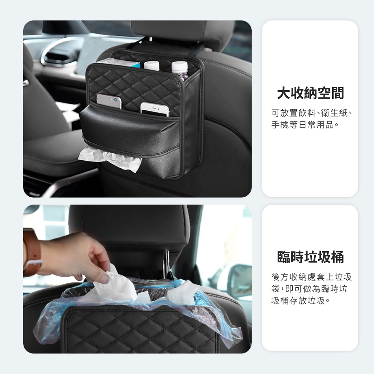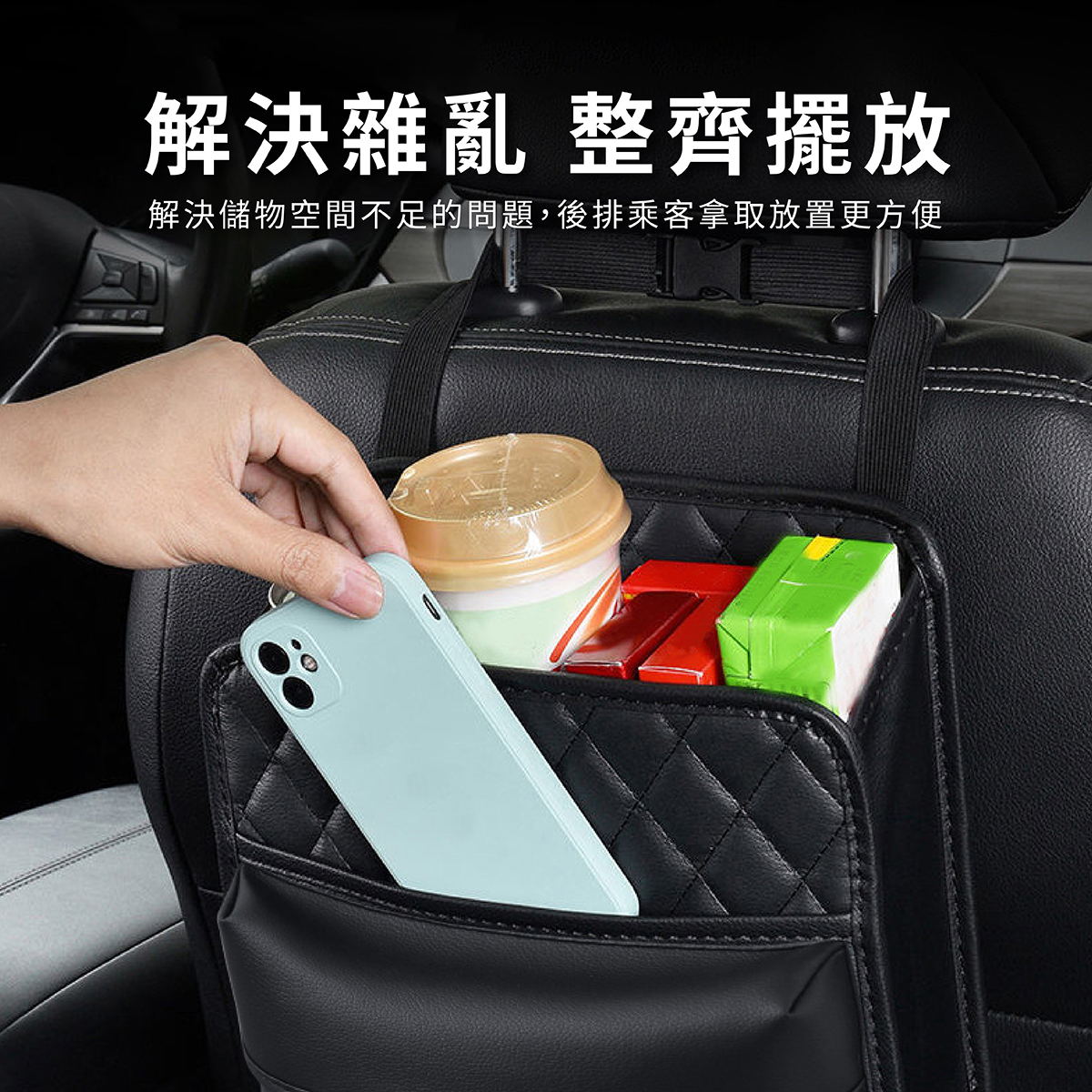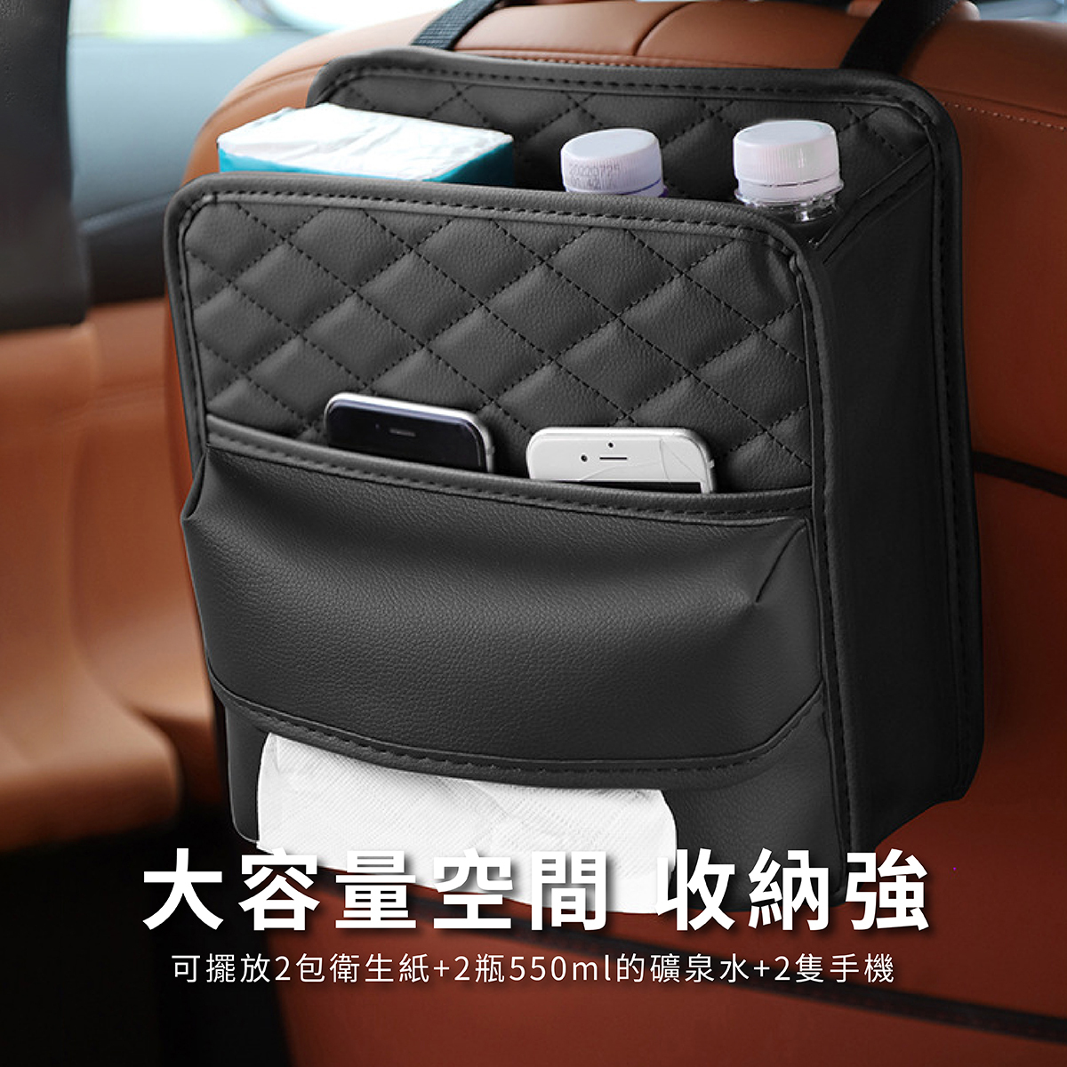 汽車椅背皮革收納袋,為車內空間整理提供便利解決方案,大容量設計能有效收納手機、錢包、飲料、紙巾等物品,保持車內整潔不凌亂。採用PU皮革材質,耐磨防污,兼具質感與實用性。獨特綁帶+夾扣式安裝,拆裝簡單快速,穩固固定不晃動。開口設計方便隨手拿取,使用靈活,不影響乘坐舒適度。適用於各類車型,是日常通勤、親子出行與長途旅行的理想車內收納工具。