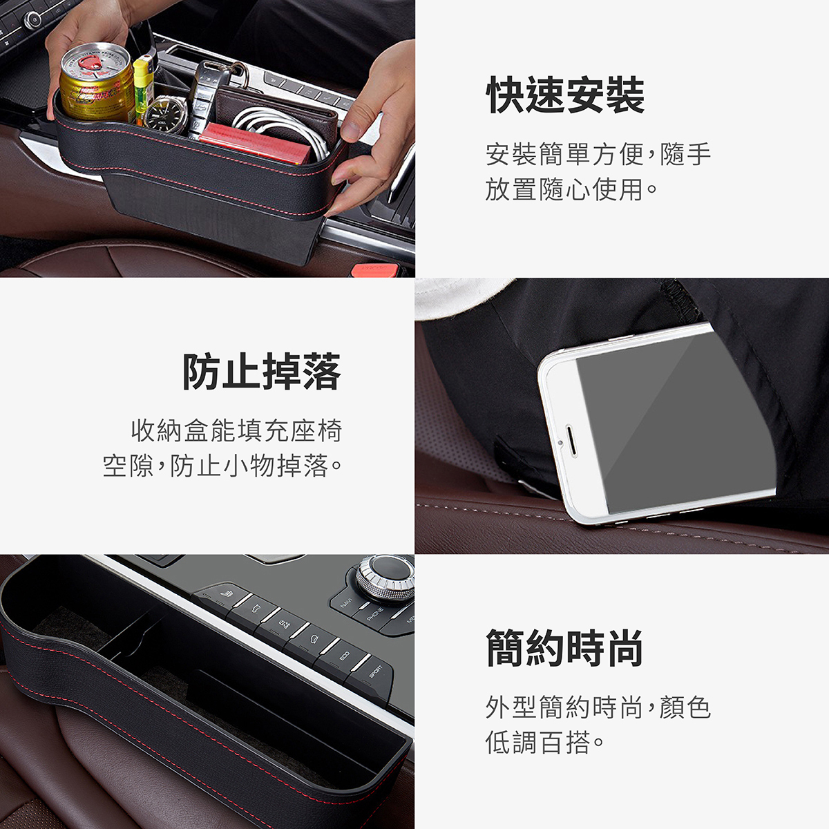 汽車座椅縫隙收納盒,專為解決車內雜亂問題設計,輕鬆填補座椅與中控間的縫隙,防止物品掉落,擴充收納空間。此收納盒適用於手機、錢包、鑰匙等日常小物,讓車內整潔有序。採用ABS+皮革材質,質感高級,耐用耐熱,高溫環境下依然穩固不脫膠。安裝簡單,即插即用,不影響座椅調整,拿取方便,提升駕駛舒適度。不論是主駕駛還是副駕駛,都能享受更便捷的車內收納體驗。