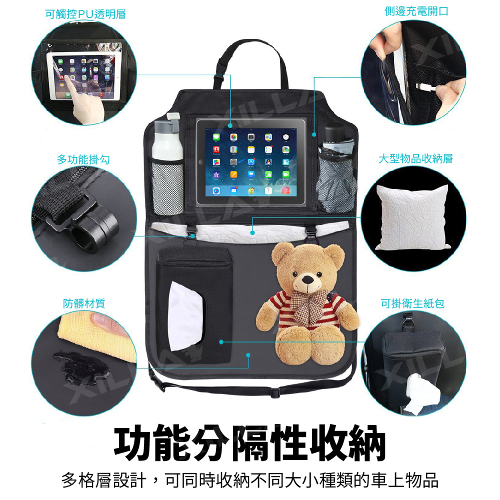 汽車座椅防踢置物掛袋,專為車內整潔與收納設計,有效防止鞋印、灰塵弄髒座椅,清水擦拭即可輕鬆去污。選用耐磨耐用材質,提供長久保護,確保您的車內保持乾淨整潔。擁有多格收納設計,可存放水瓶、紙巾、平板、雜誌等各種物品,讓後座乘客使用更便利。簡單安裝,適用於多種車型,為您增加收納空間,同時保持車內整潔有序,無論日常通勤或長途旅行皆適用。