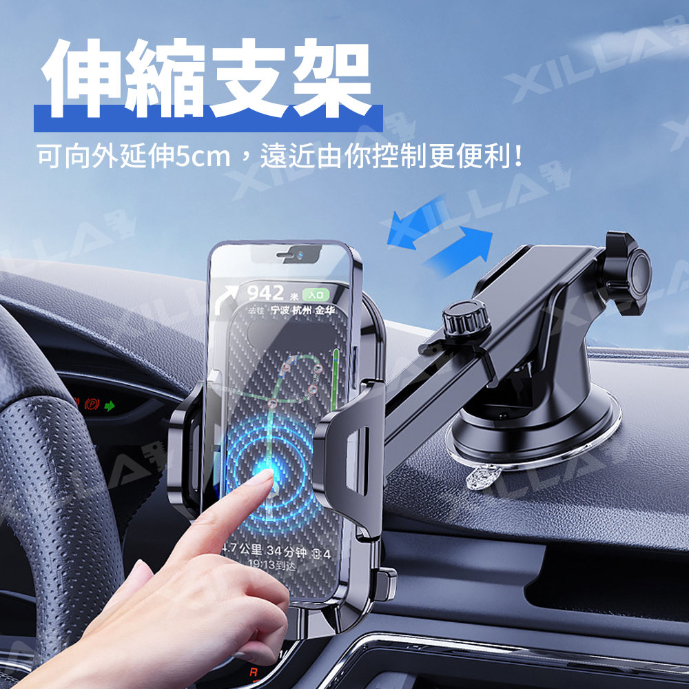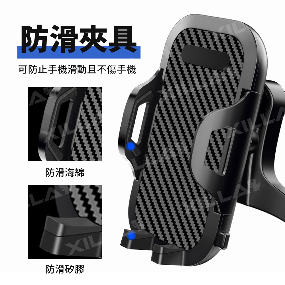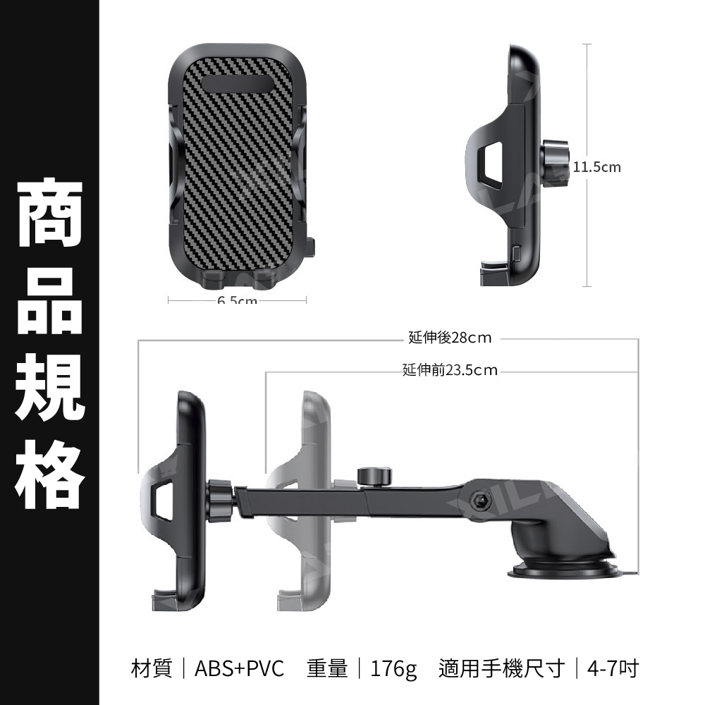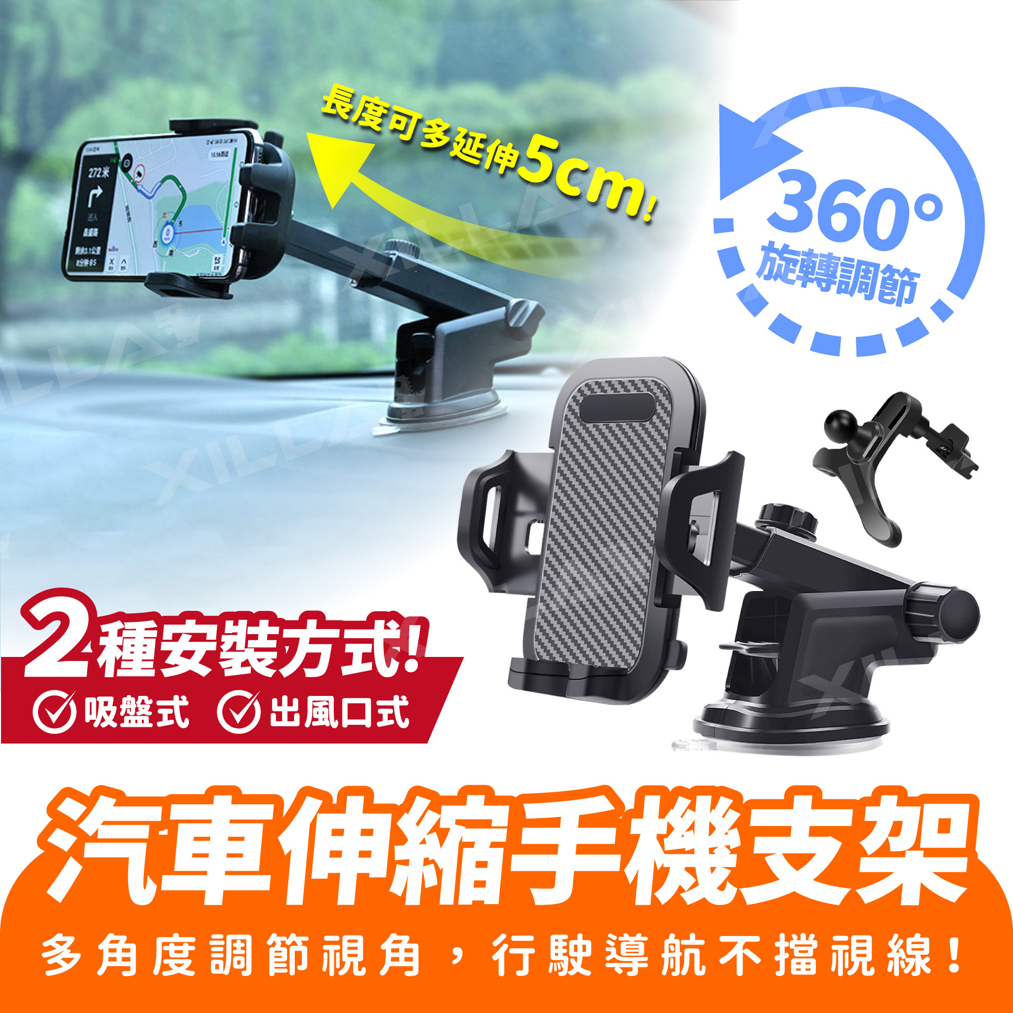 汽車吸盤伸縮手機支架,提供兩種安裝方式,讓您自由選擇出風口或吸盤固定。支架一鍵自動解鎖,輕鬆操作即可夾緊手機,支援市售4-7吋手機。三角穩固夾具有效防震防抖,搭配碳纖維紋路背板,不僅外觀時尚,也具備耐磨耐用特性。夾具內建海綿墊,提供額外保護,不傷手機。若吸盤黏性降低,只需清水沖洗並晾乾,即可恢復吸附力,無需擔心使用壽命。