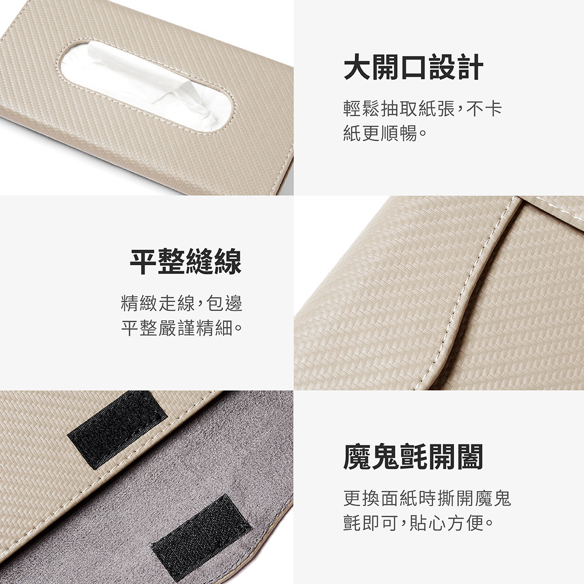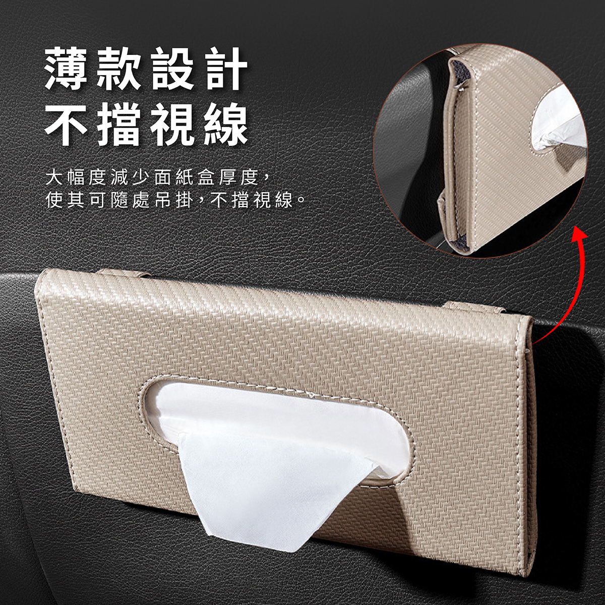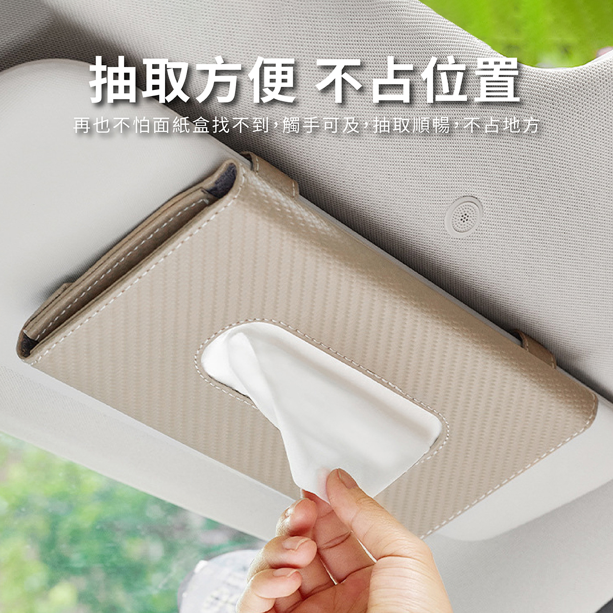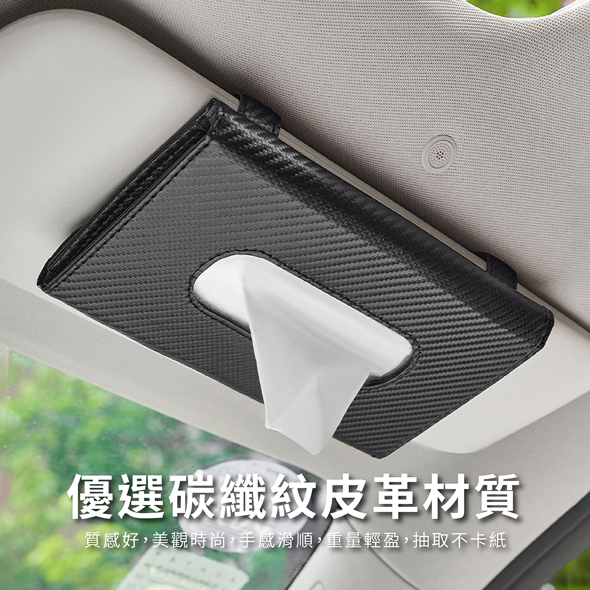 汽車遮陽板面紙盒,精選碳纖紋皮革材質,展現現代感和耐用性,為車內增添高質感。薄款設計節省空間,安裝於遮陽板上,不會擋住駕駛視線,保持安全駕駛視野。大開口設計確保紙巾能輕鬆取出,抽取過程順暢不卡紙,無需多次拉扯。雙邊強力金屬背夾,牢固固定不脫落,即使在顛簸路面上也能穩定使用。此面紙盒不僅提升車內整潔度,還能讓駕駛及乘客方便取用紙巾,無論是日常駕駛還是長途旅行,都十分實用。