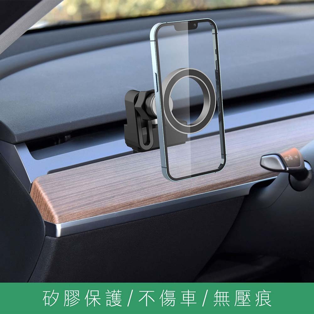 出風口磁吸手機架,專為Tesla Model 3/Y車主設計,提供無痕安裝,無需黏貼,輕鬆安裝與移除。磁吸設計讓手機穩固固定,避免滑動或掉落。底座採用矽膠保護材料,不僅不傷車內裝飾,還可有效減少壓痕,讓您的手機支架使用體驗更佳。