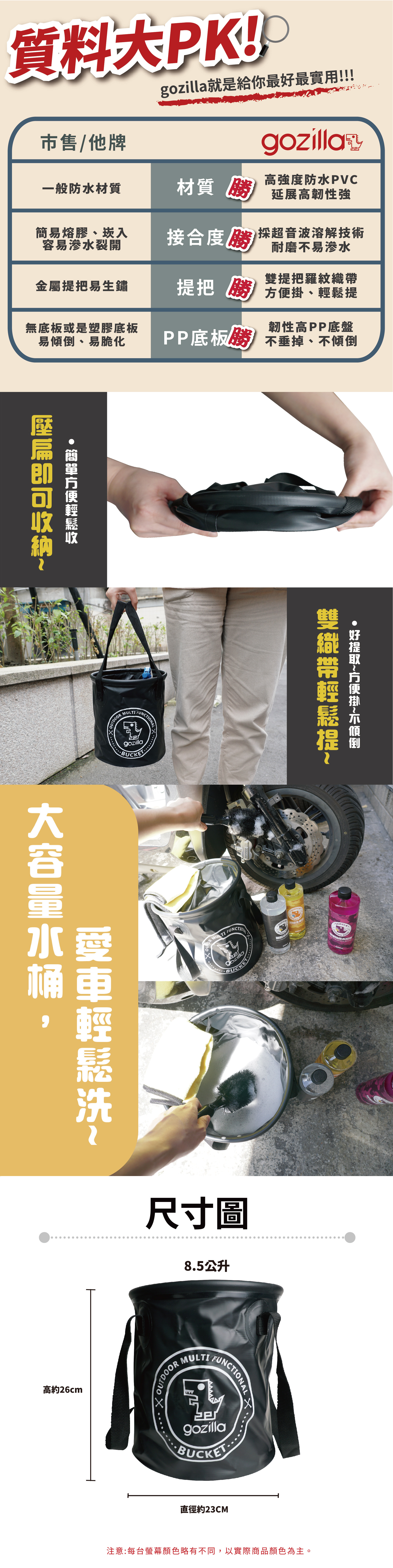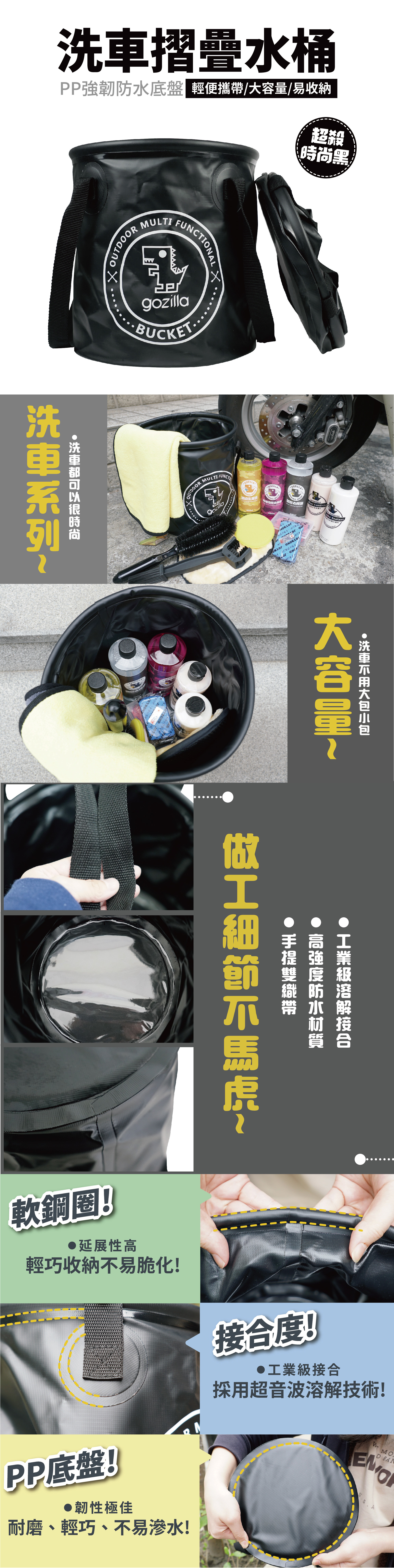 多功能洗車摺疊水桶是一款設計獨特、便於攜帶的車用清潔工具,專為車主提供便利的清潔體驗。這款摺疊水桶採用高強度、耐用的材料製成,摺疊設計使其在不使用時能夠輕鬆收納,占用空間小,便於放置於車內或後備箱中。無論是在家中、外出旅行,還是露營或長途自駕時,它都能為您提供隨時隨地的用水需求。