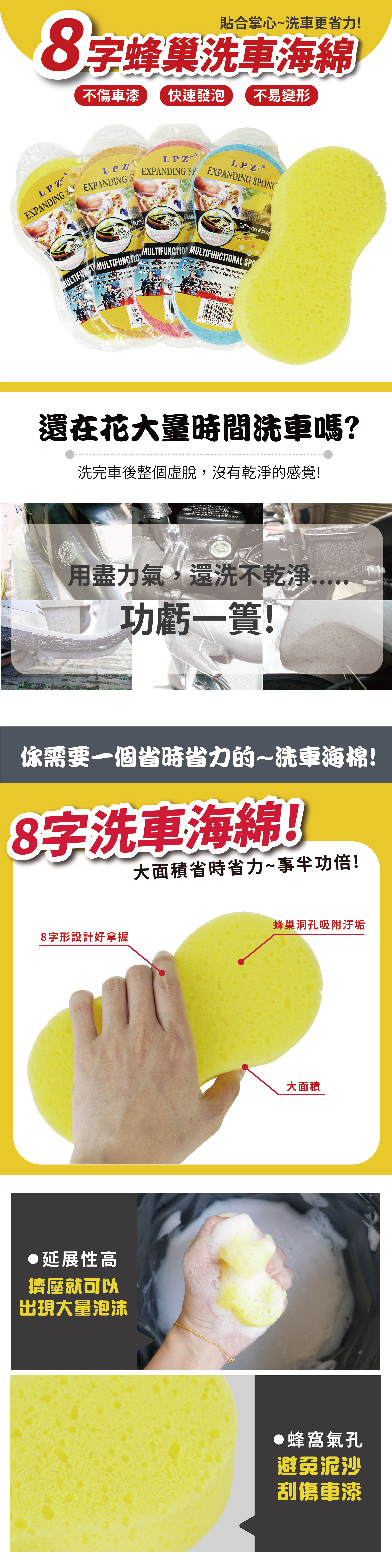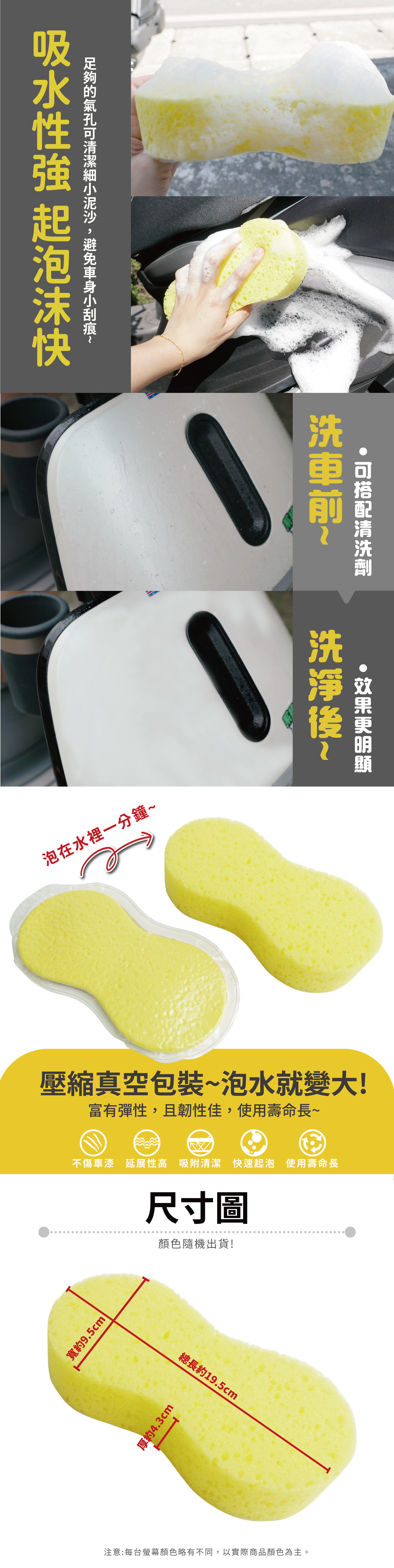 😎8字好握~洗車更方便~4款顏色隨機出貨~🏆柔軟細膩,不傷車身!🏆起泡快速,清洗車身更容易~🏆應用廣泛,洗車、浴室、居家清潔等..都可使用~🏆8字海棉, 貼合掌心,洗車更省力!真空包裝~放入水裡1分鐘就會變大~尺寸:小款 長約19.5 x寬約9.5 x厚約4.3cm大款 長約23.4 x寬約11x厚約6cm(圖片介紹為小款)