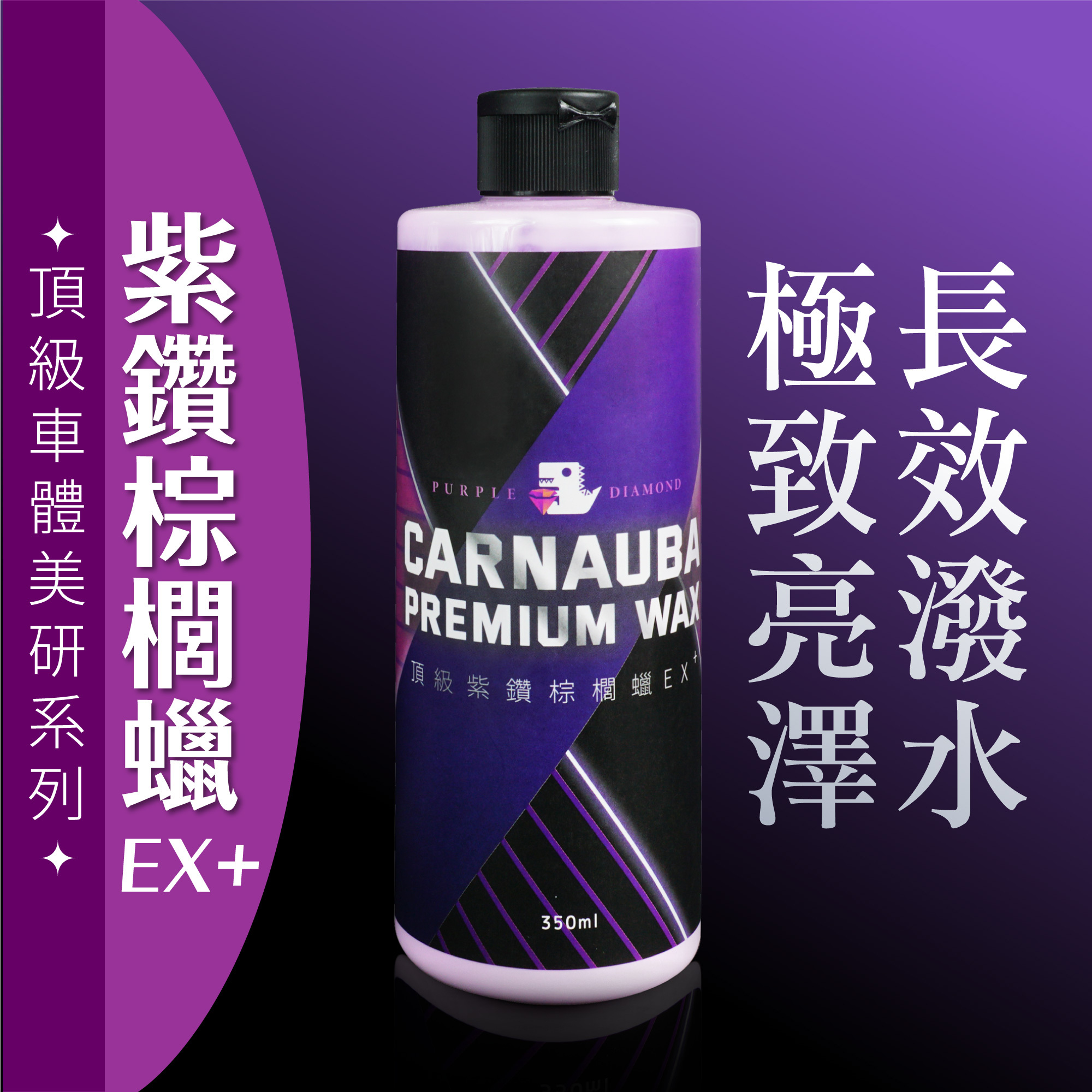 🏆頂級巴西棕櫚蠟+紫鑽晶透亮特殊配方,讓車漆高光增艷更上一層樓!