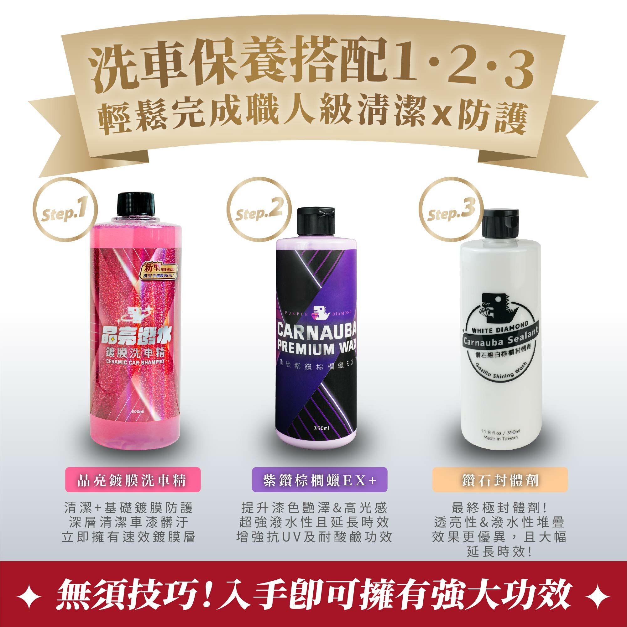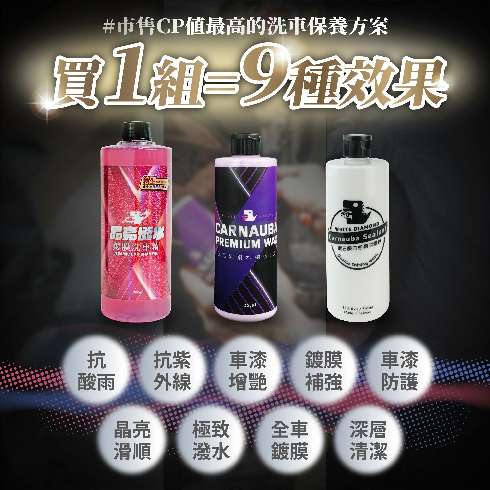 搭配鍍膜洗車精一起使用,兩罐就讓你的愛車宛如新車出廠!最頂的成分與最親民的價格,愛車玩家的你絕對不能錯過!