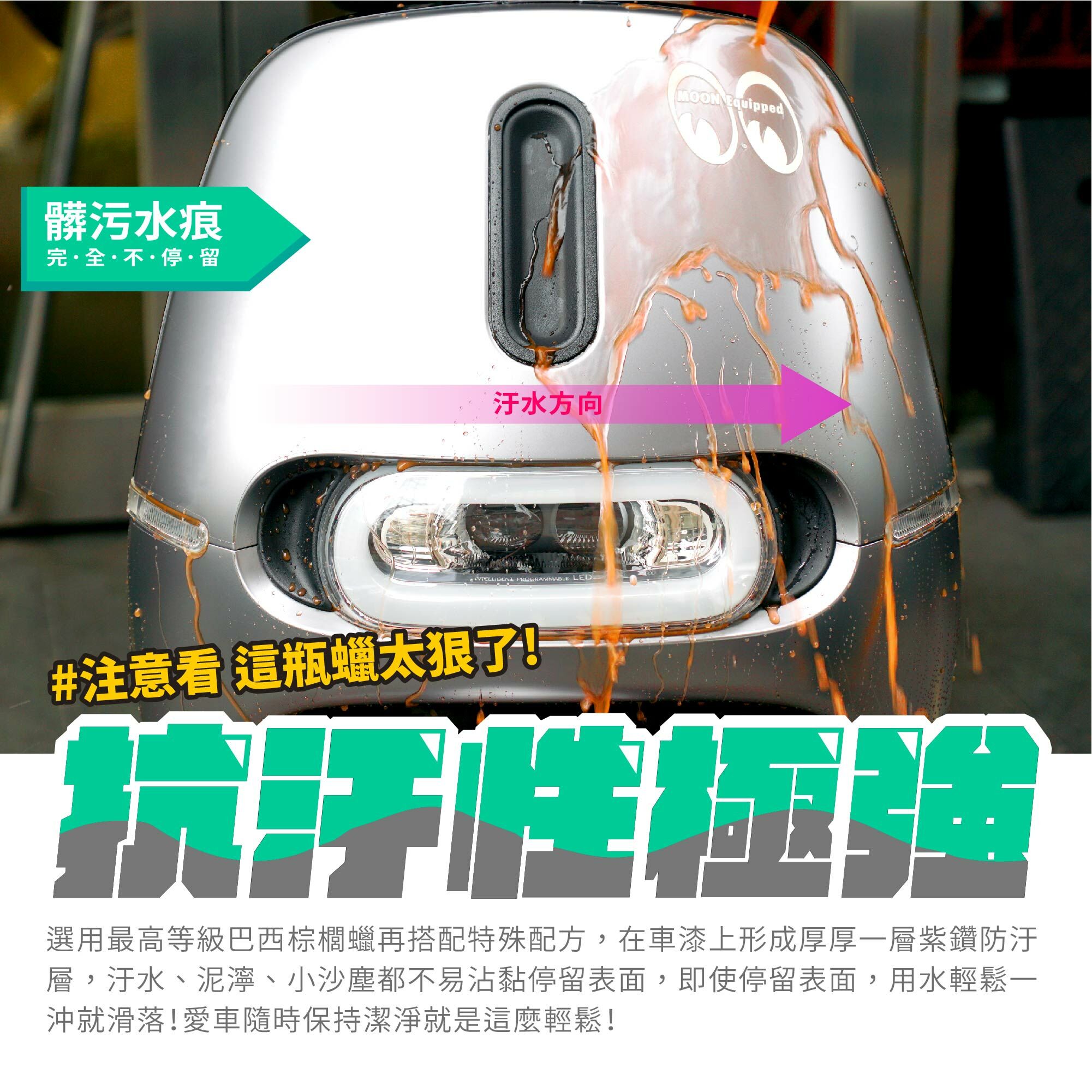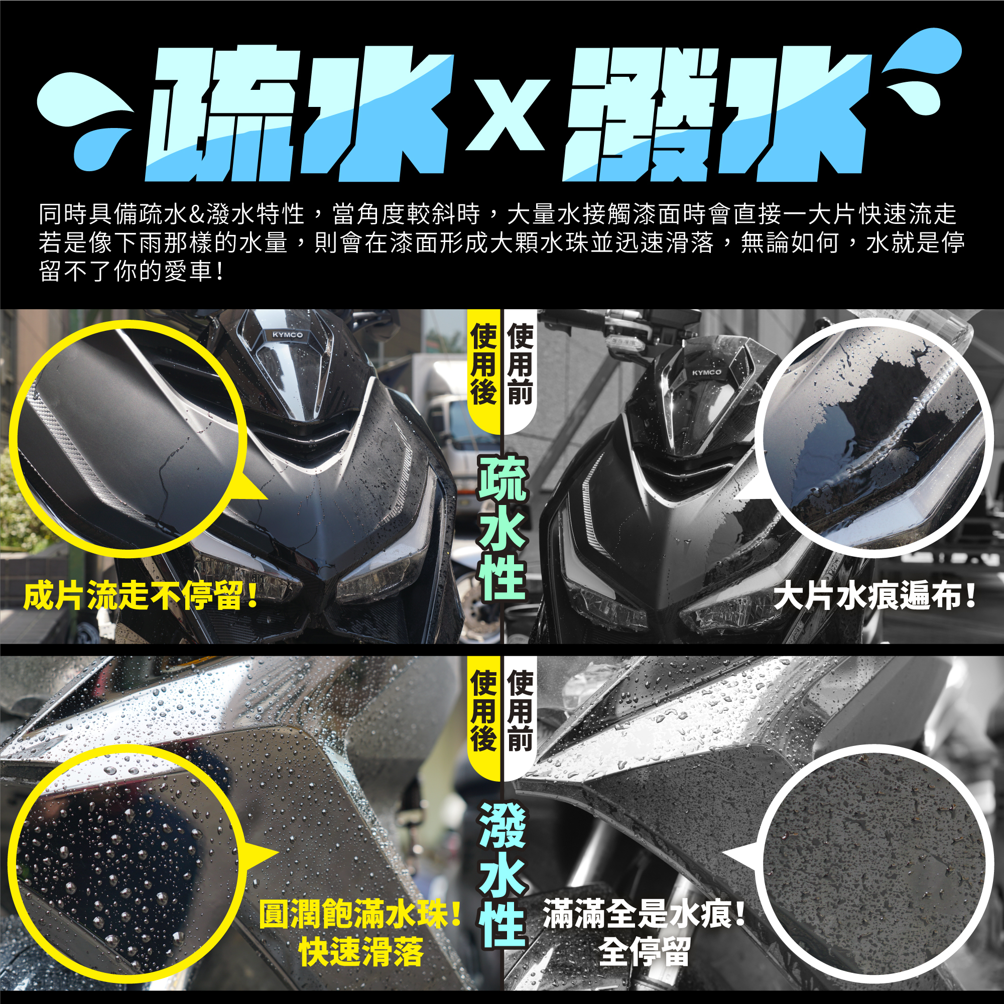 🏆疏水/潑水特性雙管齊下,無論大雨還是毛毛雨,完全不停留車殼上!