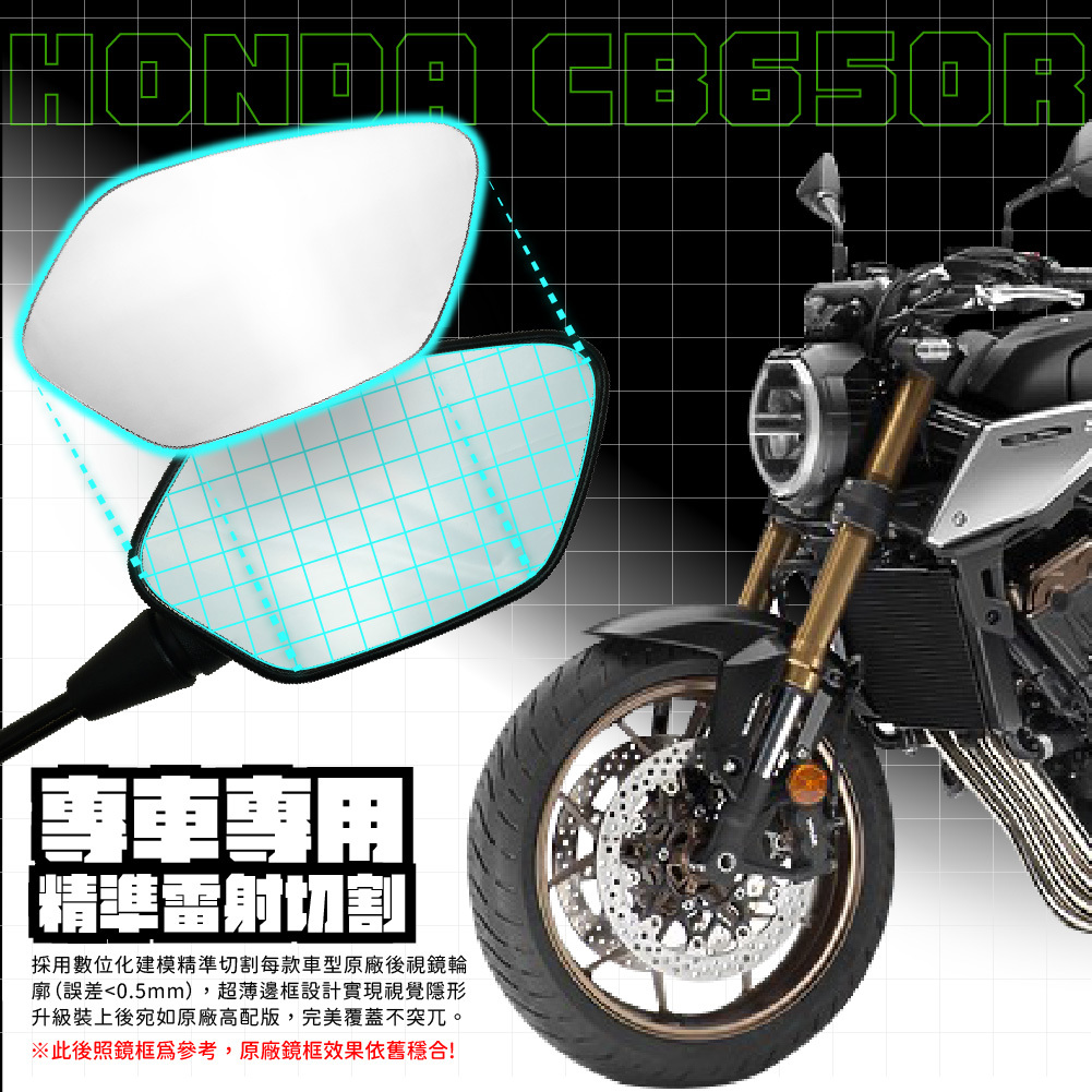 HONDA CB650R 專用「超視野廣角後照鏡」專為運動街車騎乘設計,凸面廣角鏡片大幅擴展後方視野,有效降低盲區,變道與高速行駛更安全。鏡面採防眩光處理,即使夜間或逆光環境也能保持清晰後方視線,減少視覺干擾。穩固支架結構抑制行駛震動,影像穩定,多段角度可調整,快速找到最佳騎乘視角。專車直上安裝,不破壞CB650R流線外觀,是通勤、跑山與長途騎乘的理想安全升級配件。