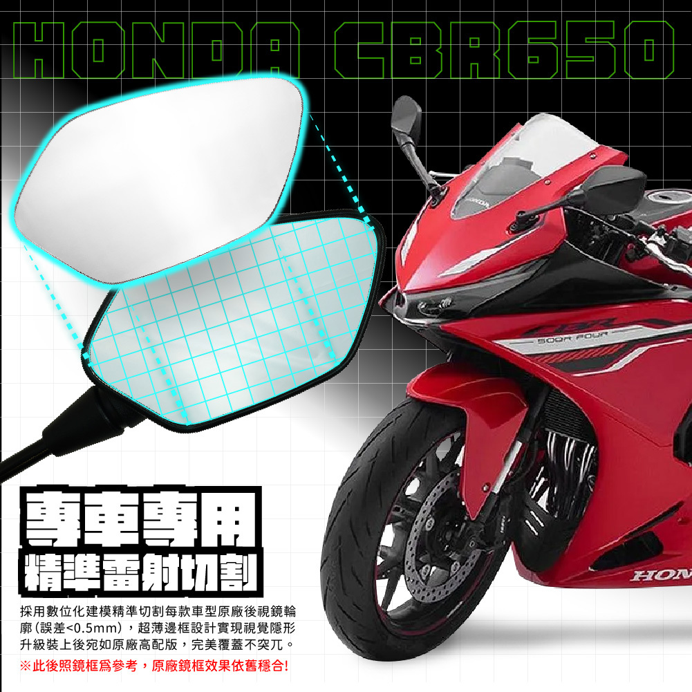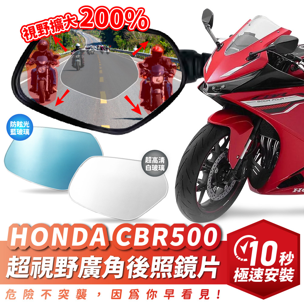 HONDA CBR500 專用「超視野廣角後照鏡」專為運動街車騎乘需求設計,凸面廣角鏡片大幅提升後方可視範圍,有效減少盲區,變道與高速行駛更安全。鏡面採防眩光處理,即使夜間或逆光環境也能保持清晰視野,減少視覺干擾。穩固支架結構降低行駛震動影響,保持影像穩定,多段角度可調整,快速找到符合騎士坐姿的最佳視角。專車直上安裝,不破壞CBR500流線外觀,是通勤與長途騎行的理想安全升級配件。