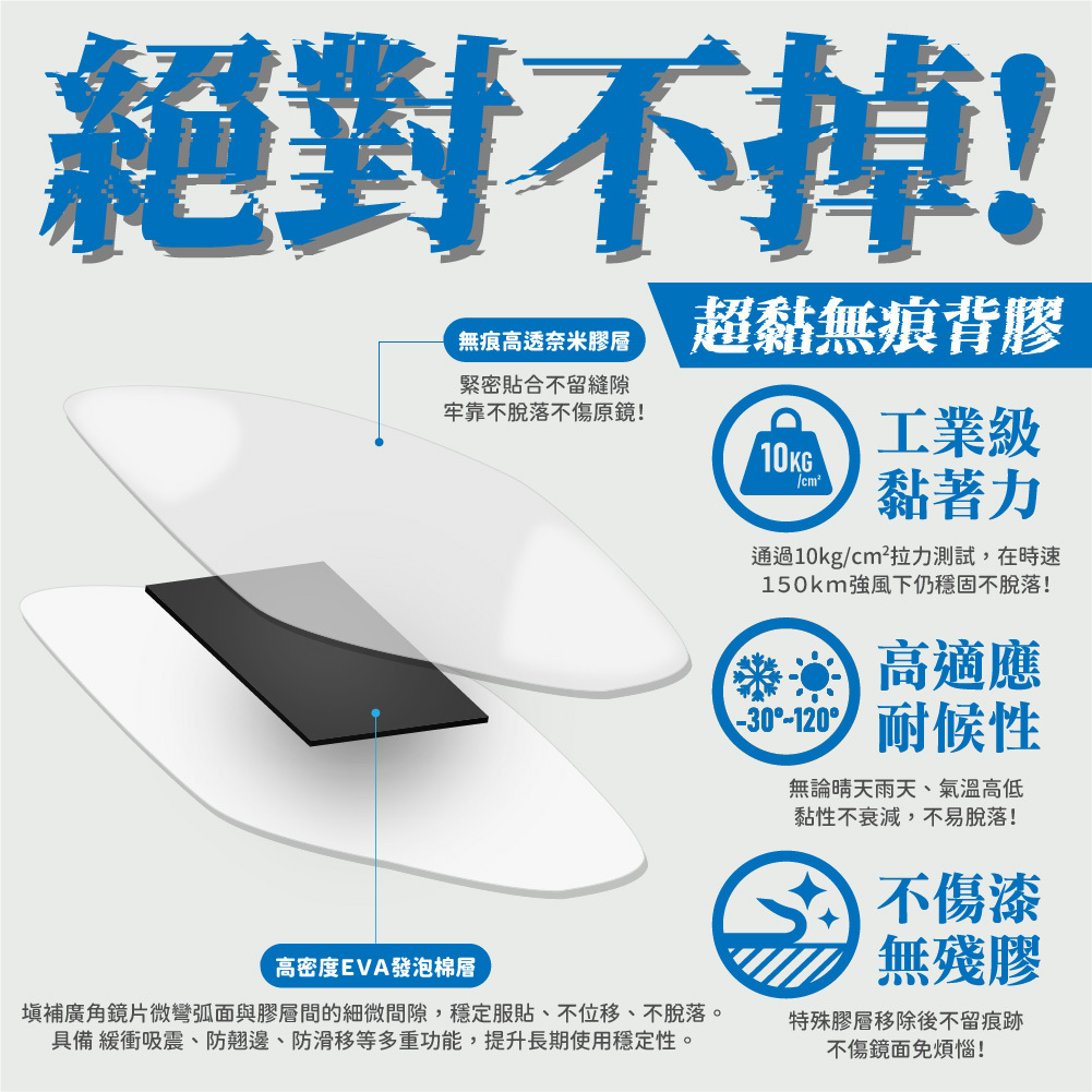 ●鏡片皆以原廠後照鏡尺寸開發,專車專用,若您有改裝後照鏡會無法安裝,購買/撕除背膠黏貼前請確認形狀是否一致。