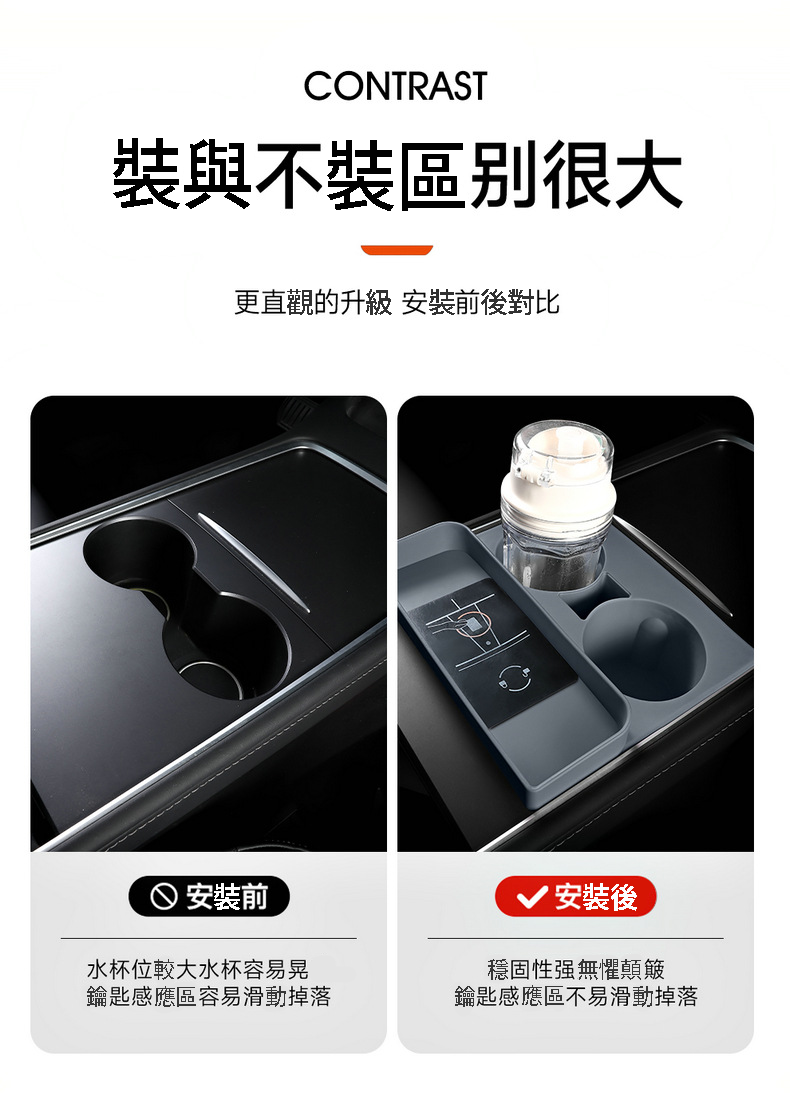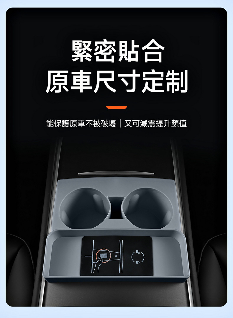 中控矽膠水杯底座,專為 Tesla Model 3/Y 設計,採用高品質矽膠材質,具有防滑防側翻功能,讓您不再擔心車內飲料潑灑。精密3D掃描開模,完全貼合水杯底部,無論是水瓶還是咖啡杯,都能穩固放置。整體設計簡單易清洗,輕鬆一沖即潔,保持車內清爽。它不僅提供穩定的支撐,還能有效保護車內裝飾,增添便利性與實用性,提升車主的駕駛體驗。
