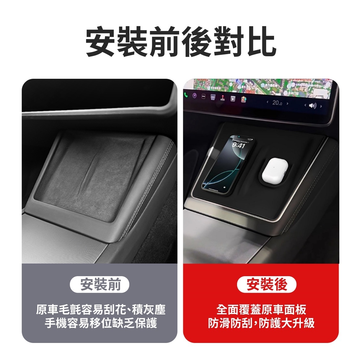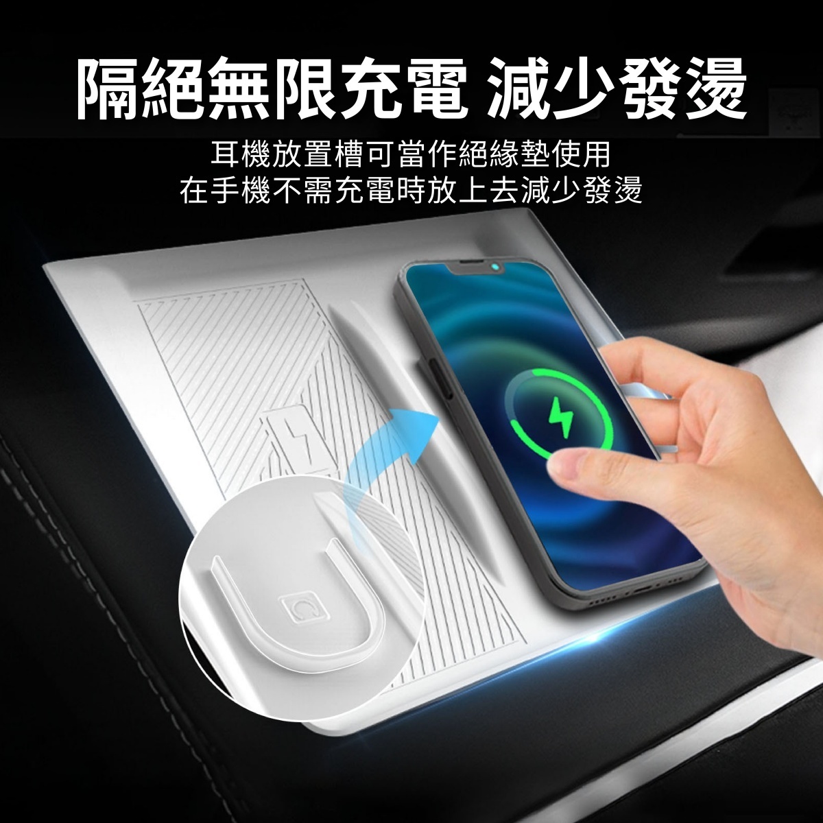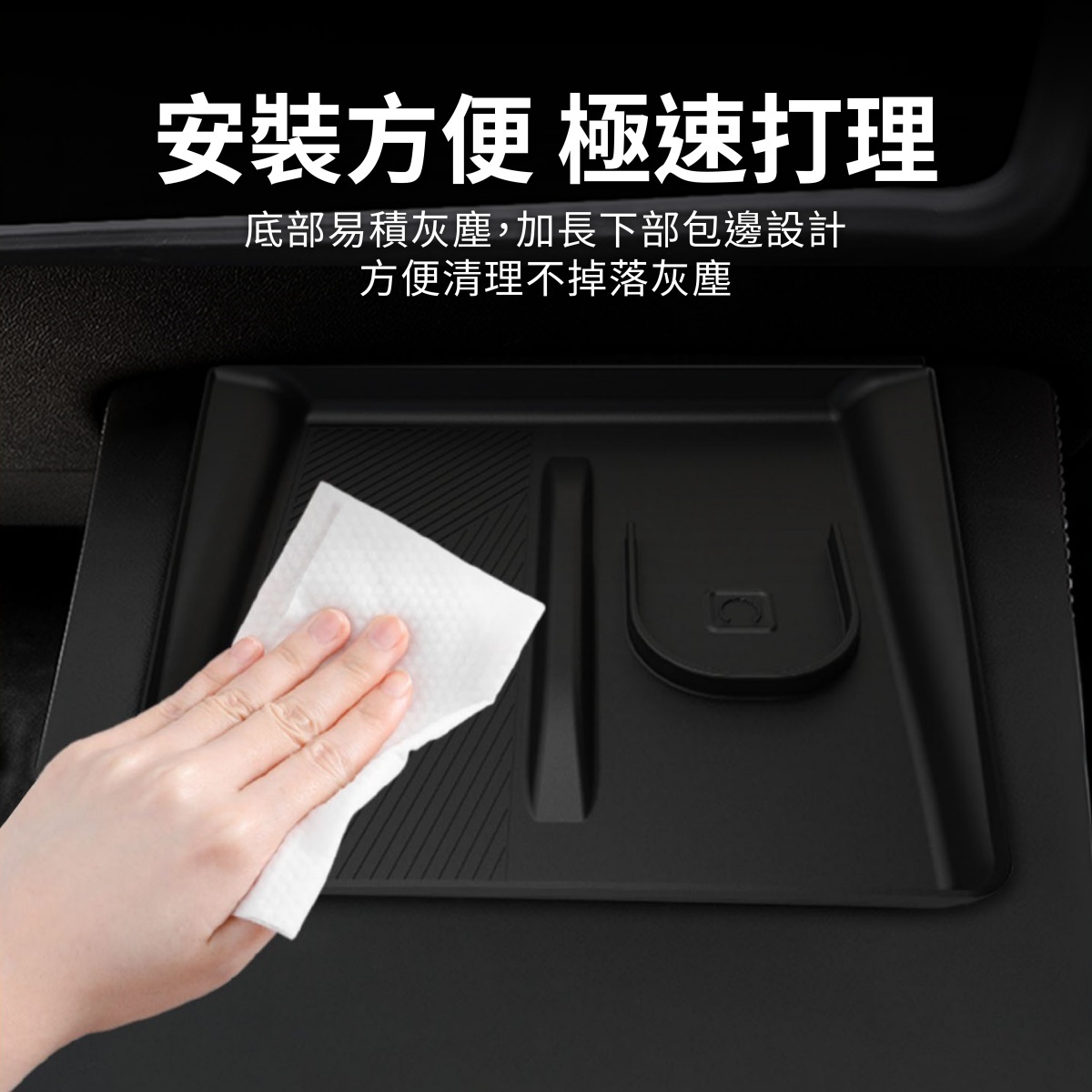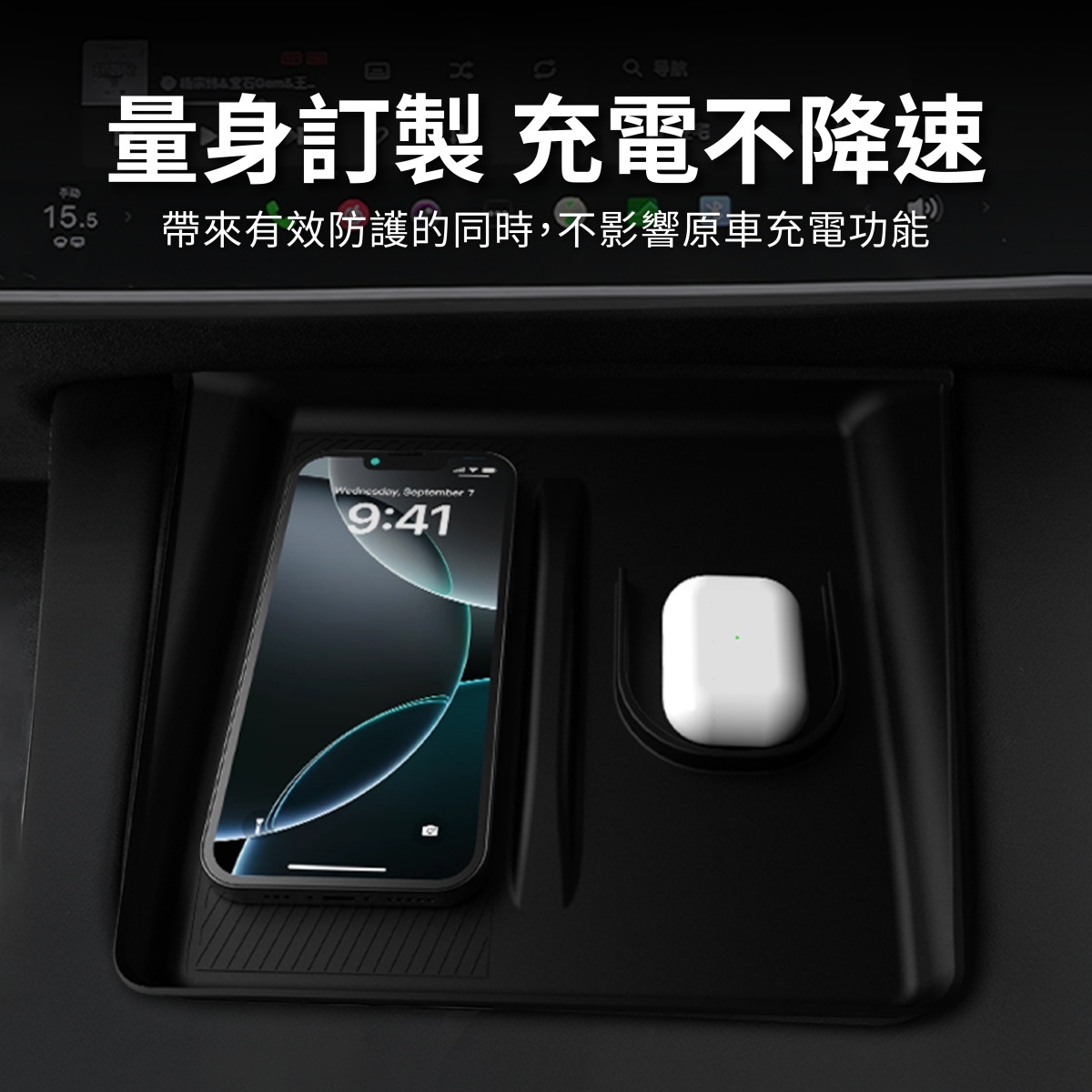 中控無線充矽膠墊,採用原車 1:1 掃描開模,版型精準貼合,放上中控位置後自然服貼不滑動。選用環保矽膠材質,柔韌有彈性,耐拉扯不變形,可有效減少刮傷並具備防滑、降噪效果。日常若沾染灰塵或飲料水漬,也能直接水洗快速恢復乾淨。安裝簡單,無需工具即可完成,並且不影響原車無線充電功能,是提升車內使用體驗的實用升級配件。