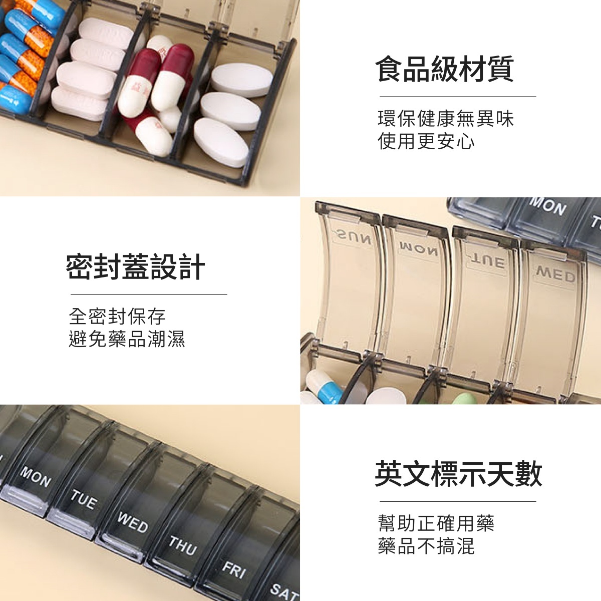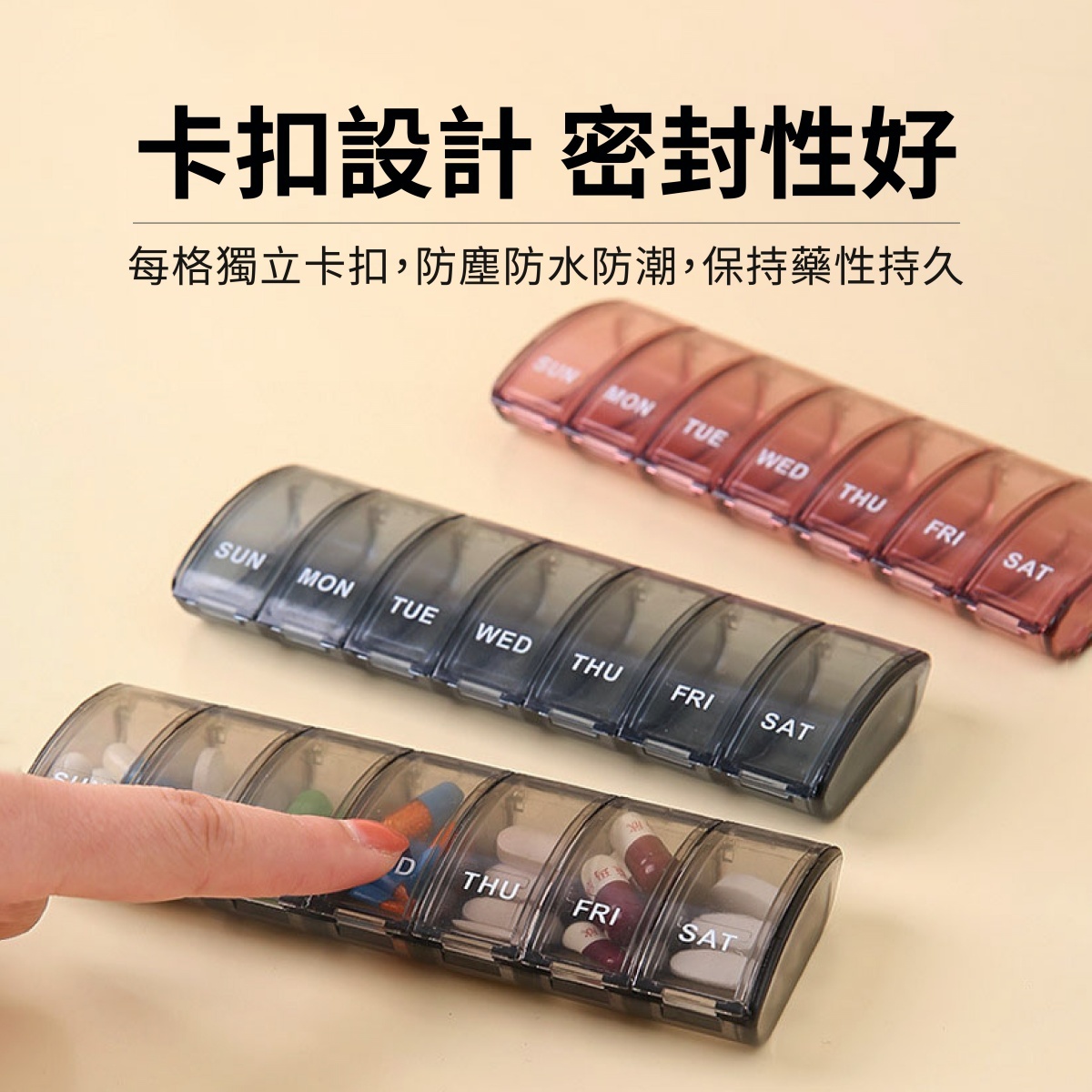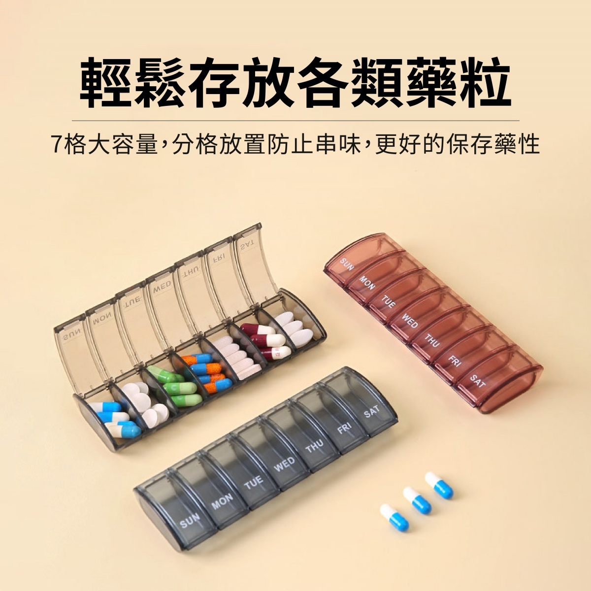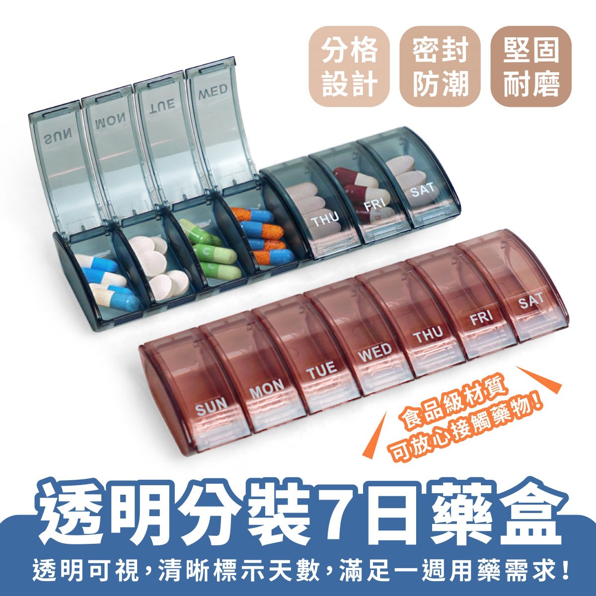 透明分裝7日藥盒,為每日藥物管理打造,採用可視透明盒身,讓每格內部藥品清晰可見,減少誤食風險。全盒使用食品級ABS材質製成,無毒無味,可安心存放藥品與保健品。每格標示明確天數,方便快速識別每天藥量,並具備良好密封性,能有效防塵、防潮、防水,守護藥品品質。不僅如此,貼心設計讓每一格可獨立開合,拿藥時不會影響其他格,使用上更安心。小巧體積方便隨身攜帶,無論居家或出門都實用無負擔,是每日服藥族與健忘星人的理想選擇!