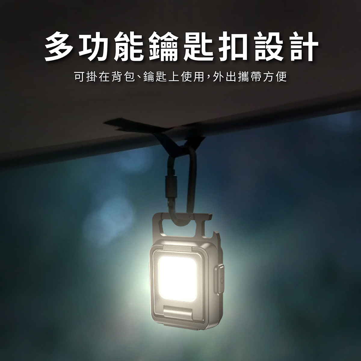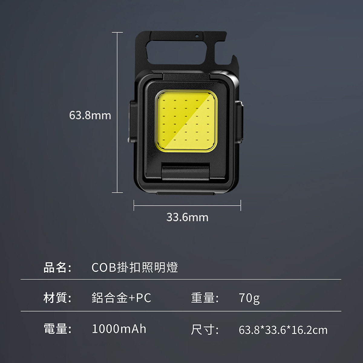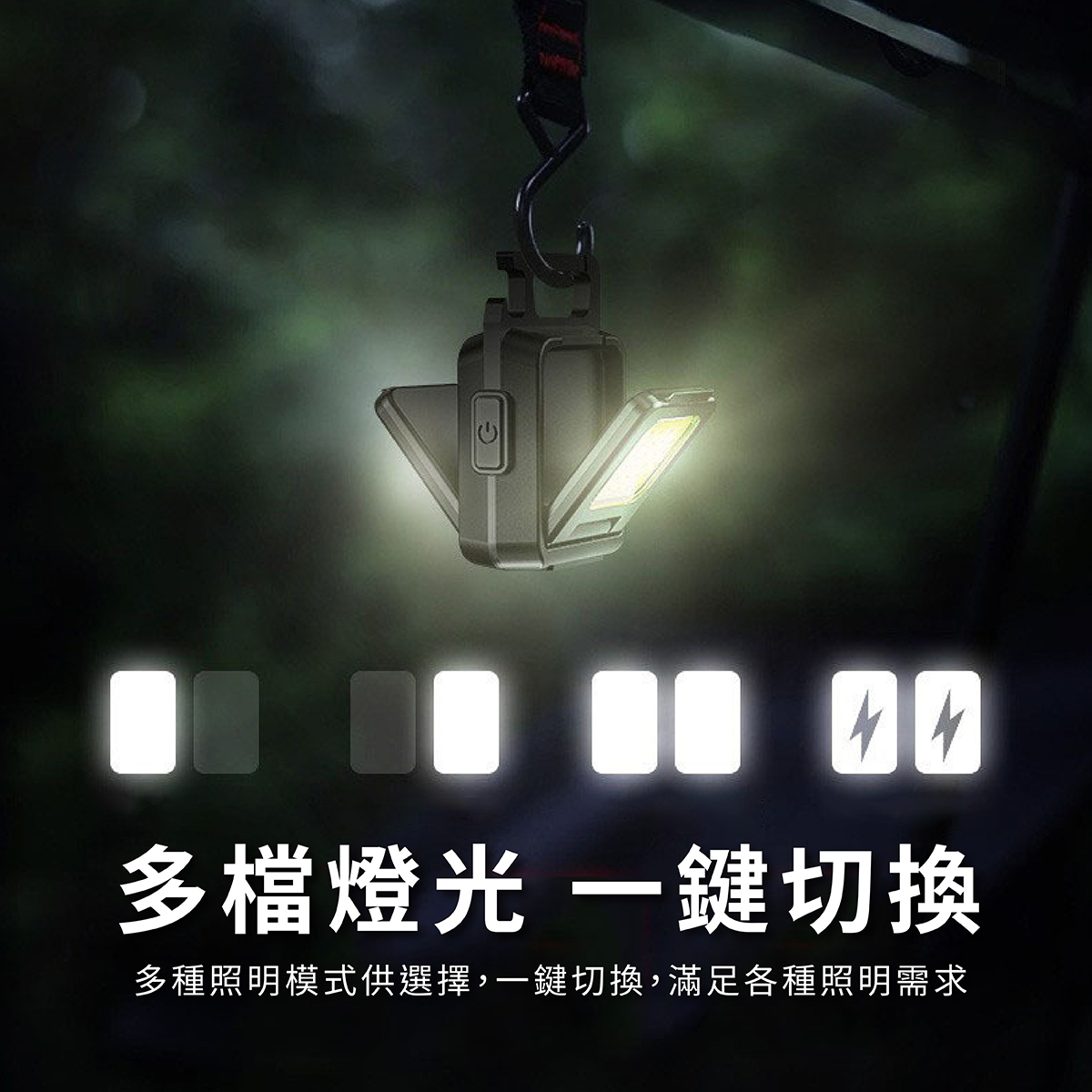 COB掛扣照明燈擁有小巧迷你設計,重量僅70g,四段式照明模式,操作簡單,一鍵切換,提供左燈、右燈、全亮和爆閃模式。內建掛扣設計,能輕鬆掛在鑰匙或背包上,隨身攜帶。90°可調式雙面COB面板,提供全方位高亮照明,適合露營、夜間戶外活動和日常使用。提供單面與雙面兩種版本,滿足不同照明需求。